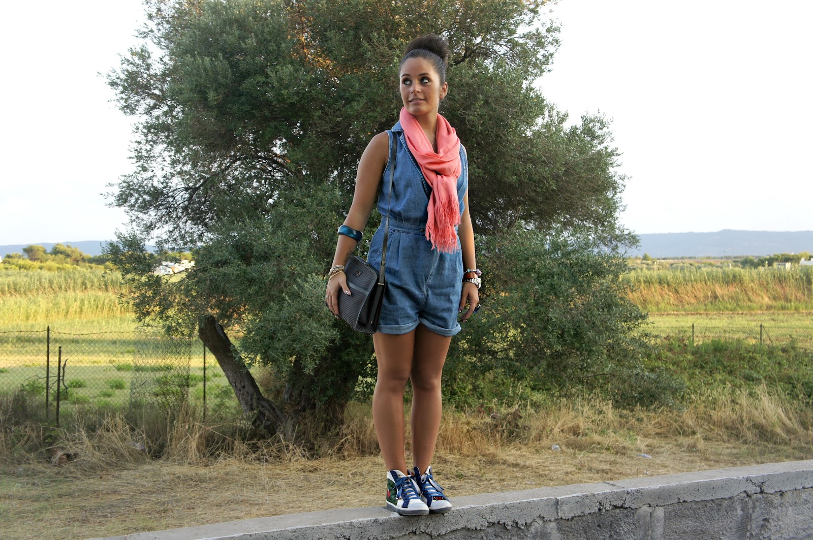 Ho scelto questo outfit comodo, con una tutina di jeans, un paio di sneakers realizzate con dei foulard che sembrerebbero uscite da un cartone animato e la magnifica tracolla vintage di Emilio Pucci! Come vi sembra l’insieme? Buona serata a tutte!