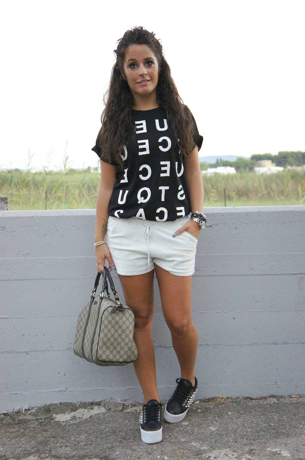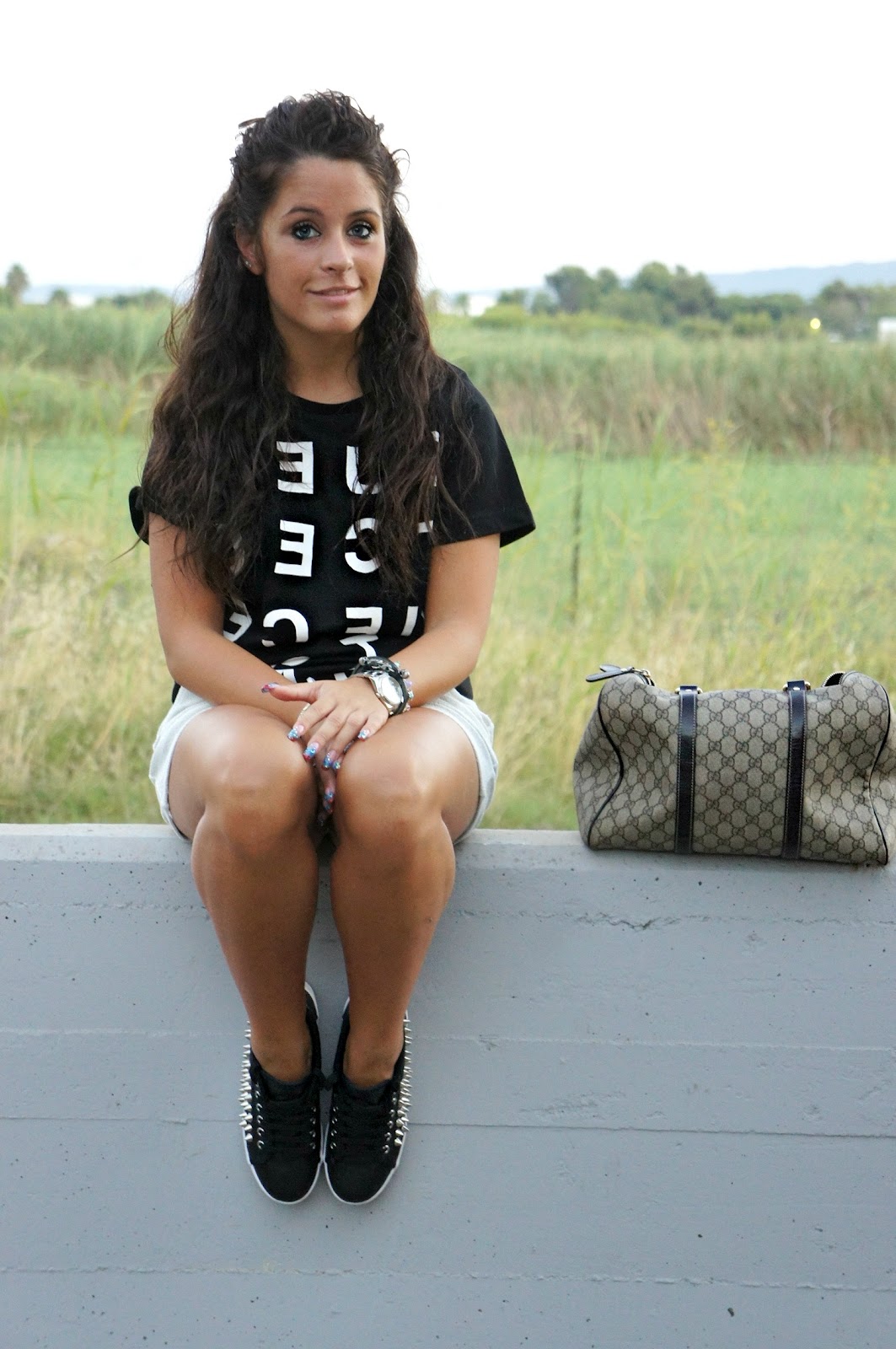 This afternoon I took the photos really in a hurry, and I honestly do not even have come out very well! However apart from this I can tell you that today my day was like this: This morning I spent a good 5 hours to do manicures and pedicures, then in the afternoon I was given a long sleep, and tonight we’ll go to a place nearby to a party and I’ll go like this: padded shorts, t-shirt 5preview and the legendary Jeffrey Campbell studded. a look that I love very much.