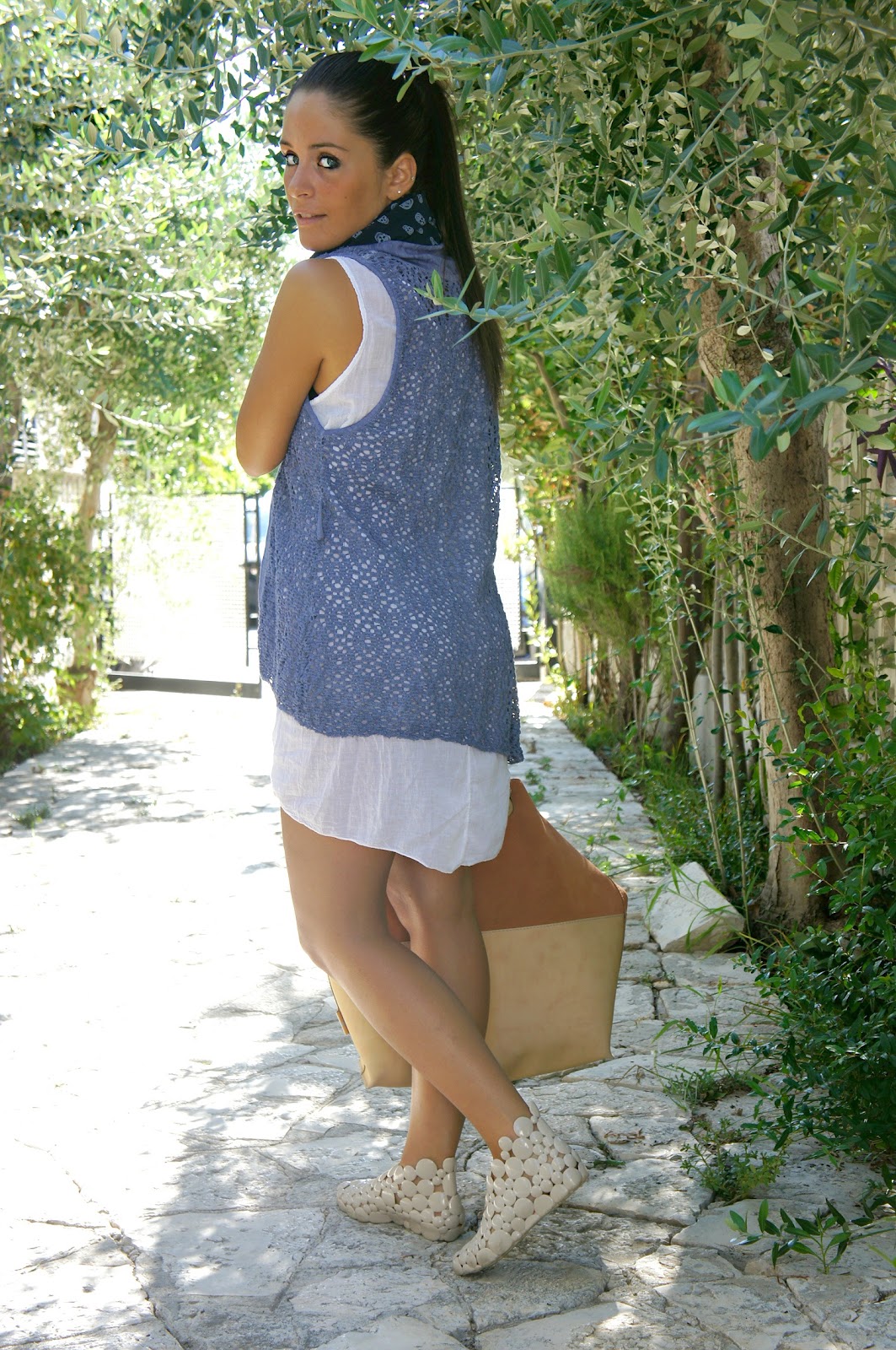 Hello. What to say, the summer is almost over and I am sad for this because I hate the inveno and all that entails, but other than that I show you the outfit on Tuesday. This time I chose a look a little ‘different, with this dress “double” is embroidered on the back and the shoes Melissa perforated to say the least abstract. And on these shoes I would like your opinion, because I know that you do not see every day models as well, but I personally soon as I saw I could not resist, even if they are uncomfortable to say the truth.