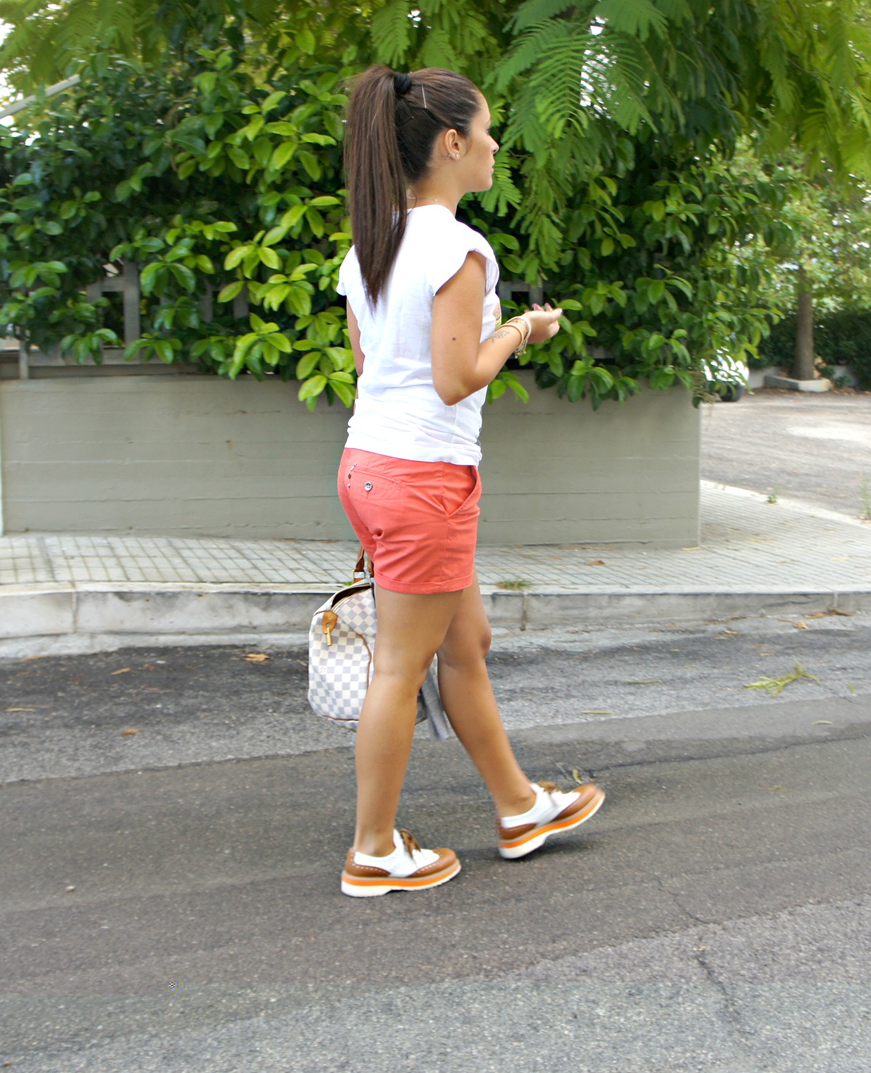 Hello! Here is one of the outfits worn in these days and to tell you the truth I do not like: mid-leg coral shorts, t-shirt Happiness with Macaron drawn on and Prada slipper for me fabulous. You know I can not wait to start doing more cold and wear the winter, I can not stand this heat and this period. And what do you prefer hot or cold instead?