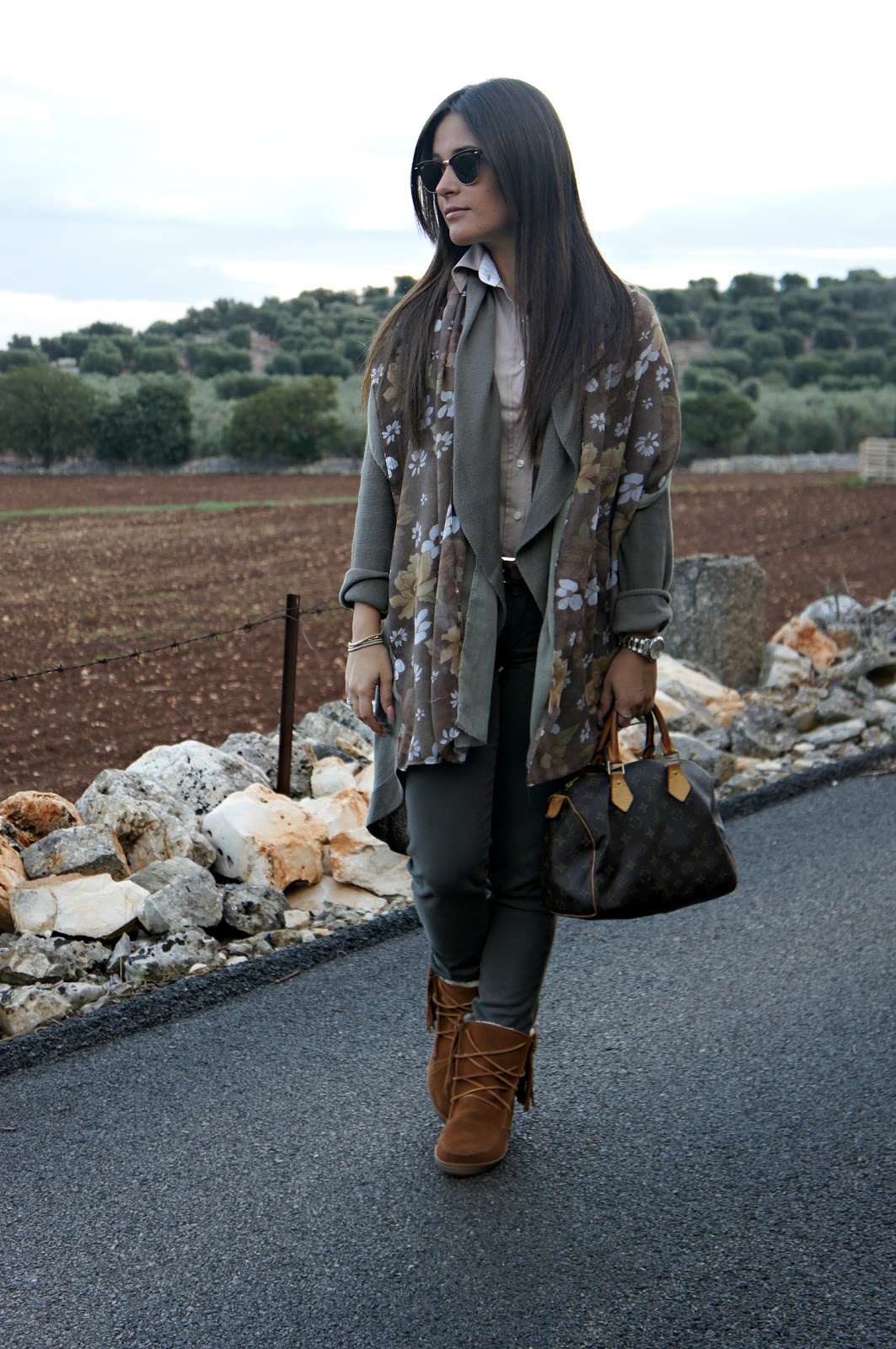 Aprendo il mio armadio ho tirato fuori questo jeans tortora Liu Jo che non indossavo da un bel po’, una shirt chiara che ho messo soltanto una volta e ho abbandonato nell’armadio e questo lungo cardigan di un bel colore tra il fango e il verde militare. Colori caldi, invernali che vediamo riproposti in molte riviste di moda, insieme al borgogna, l’innovativo metal e il classico marrone, colori chiave di questa stagione.