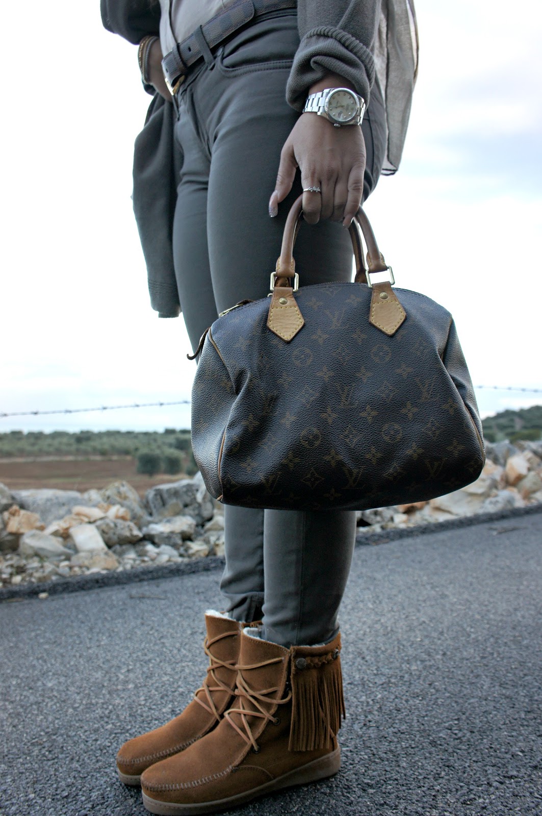 Passiamo alla scelta dei boots….ehhh i miei adorabili, caldissimi e morbidissimi Minnetonka con le frange, da ieri è iniziato il freddo e finalmente possiamo iniziare ad uscire la roba invernale. Infine per dare un tocco di eleganza ho scelto di mettere questa sciarpa in un modo diverso dal solito, facendola scendere sulle spalle . Il risultato può sembrare un po’ eccessivo, in quanto ho usato vari capi di abbigliamento, ma vi dirò, apprezzo molto il risultato finale.