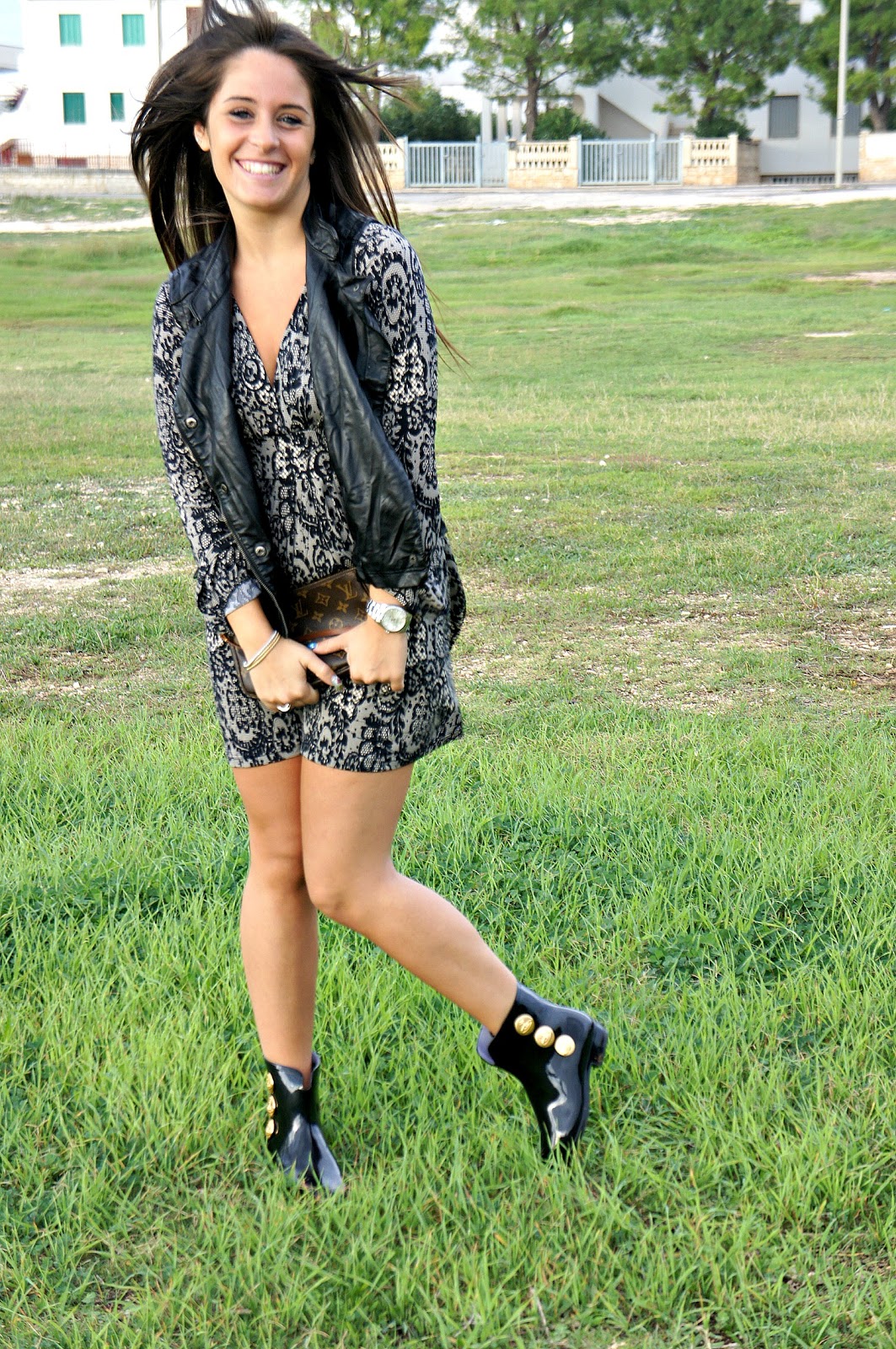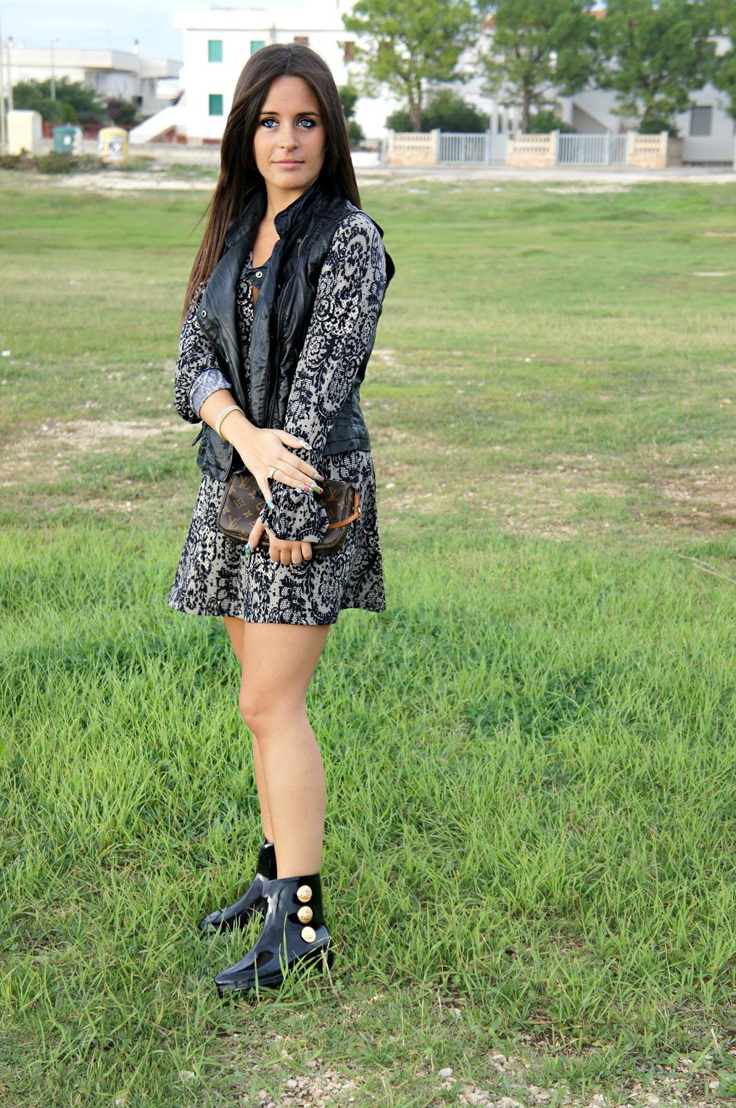 Ciao a tutti! Rieccomi qui, sul mio blog con un nuovo post e quindi un nuovo outfit: vestitino a maniche lunghe a fantasia, gilet in ecopelle di Bershka e stivaletto di Melissa in collaborazione con Vivienne Westwood…