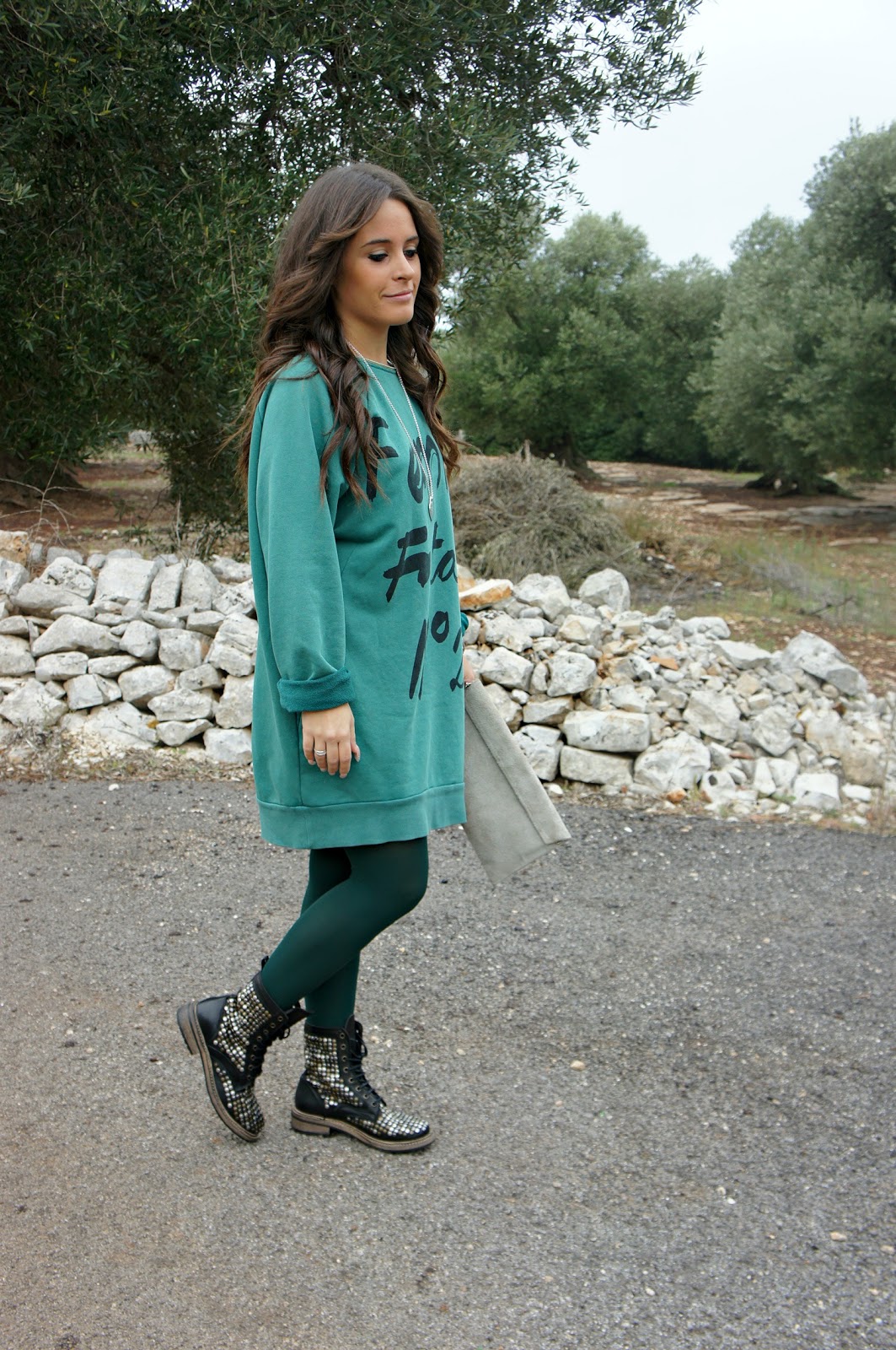 Hello everyone! Today I propose a look based more on the green dress (dress seems more than a maxi-tee) is very special in that it has a zipper on the back … is 5 Preview, make that lately more and more to appreciate its variety of animals and especially the uniqueness of them! Regarding the choice of the stocking, I was undecided whether to wear black or green, but in the end I chose the green and I have to say that the result I do not mind at all! What do you say? Turning to the boots, I have adored from the first moment I saw them and they are obviously not made me run away … although, if I’m being completely honest, I’m a little ‘difficult to match, but this time I think I made the right choice! Finally, simple gray clutch and necklace Tiffany & Co. The result is a look suitable for an evening with friends! What do you say? If you like put.