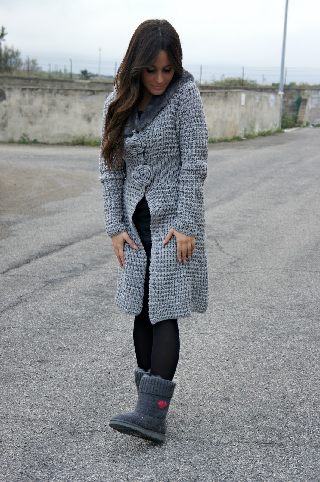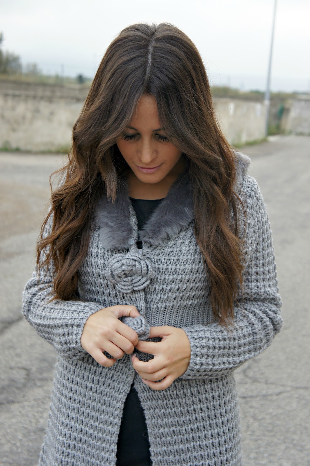 Nel secondo look, troviamo una giacca lunga in lana con un colletto in pelliccia. Indossando un capo così, non c’è bisogno di aggiungere nient’altro… e farebbe la sua figura anche indossato da solo. Sotto in entrami i look, indosso questi stivaletti con pelliccia, tanto comodi e tanto belli.
