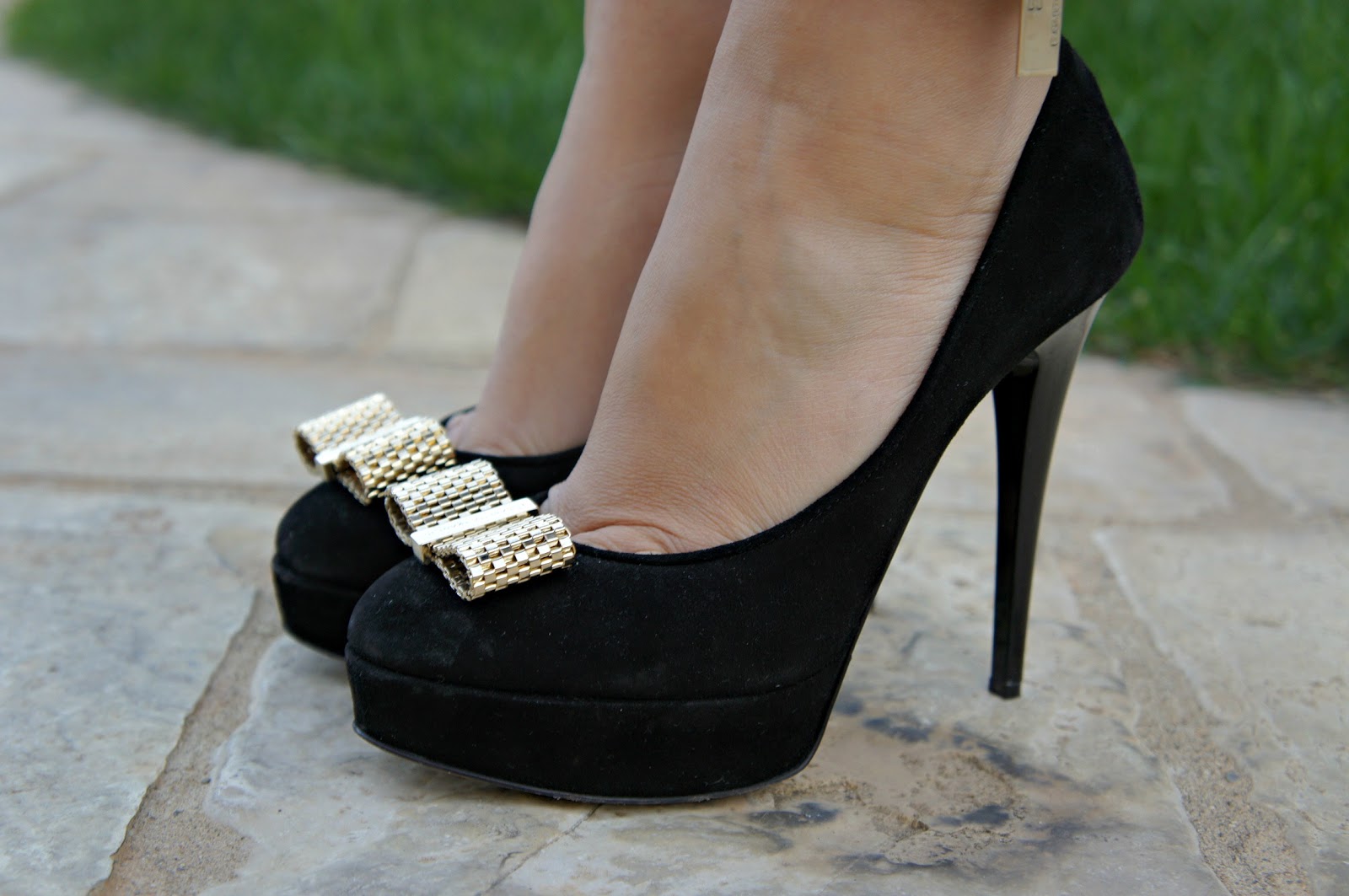 Partiamo dal fatto che mercoledì era il compleanno della mia amata sorella e per l’occasione volevo essere elegante per lei, ma non da strafare. Data la particolarità e l’eccentricità del pantalone, ho deciso di rimanere sugli stessi colori e per di più senza esagerare… Ho scelto quindi di abbinare capi semplici rispetto al pantalone: una shirt bianca con qualche borchietta sulle spalle che si nota e non si nota, il décoletté nero con due bei fiocchi dorati, anch’esso della collezione di Celyn B. (ma non di quest’anno), e una semplice giacca nera dal bel taglio. Ovviamente non potevo mica fermarmi li! Ci voleva qualcos’altro, sopratutto con l’acconciatura che mi ritrovavo era scontata la necessità di un accessorio….che potesse essere una collana, un bel bracciale o un bel paio di orecchini… Così ho optato proprio per questi ultimi: degli orecchini neri e dorati che ho acquistato circa un mesetto fa da Torino e di cui ne sono rimasta affascinata. Anche la pochette è coordinata con tutto il resto perché anch’essa riprende il nero e il dorato del pantalone e anche di tutto il resto del look. Devo dire che sono soddisfatta dell’effetto finale, ma ancor di più per come si è svolta la serata… Ci siamo divertiti tantissimo, la priorità era veder sorridere mia sorella, renderla felice e direi che noi tutti ci siamo riusciti! Buon week-end a tutti… Al prossimo post!