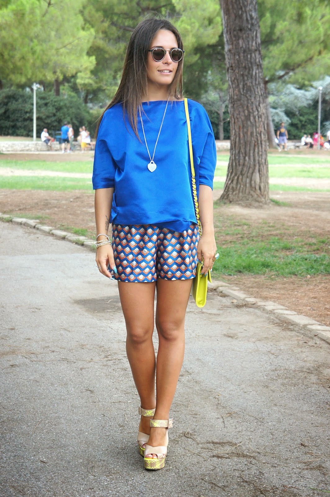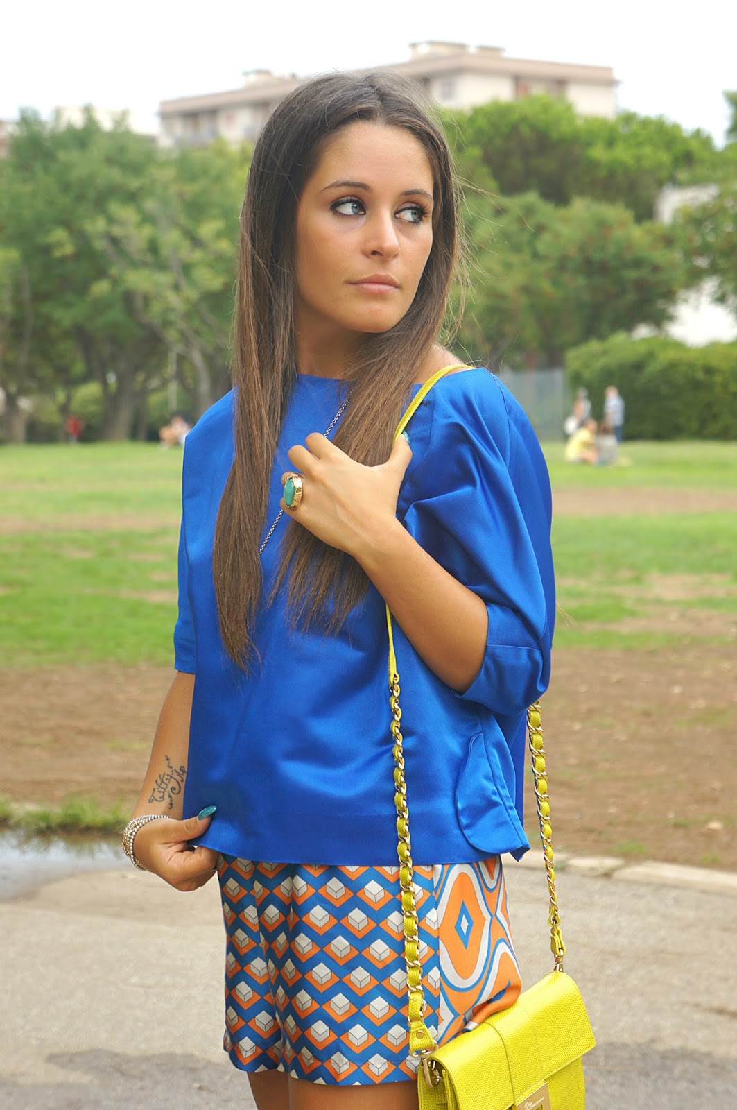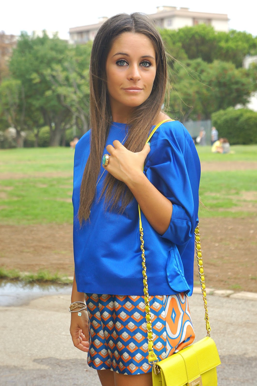 Queste bellissime foto sono state scattate nel parco di Bari, un magnifico luogo che la mia regione offre a tutti i ragazzi che hanno voglia di staccare dalla routine di tutti i giorni e vogliono dedicarsi alla lettura, allo studio o semplicemente fare quattro chiacchiere in compagnia o una lunga passeggiata. Purtroppo disto di un bel po’ di chilometri, perchè altrimenti ci andrei spesso e volentieri. Ovviamente mi trovavo lì per fare qualche acquisto, perchè d’estate con 40 gradi Bari non è proprio il luogo ideale per vivere, e così mi son detta <perchè non approfittare di questa venuta per fare qualche scatto con un look che gode particolarmente della mia simpatia (ihihihih)?>. Indosso questa bellissima blusa blu elettrico di Capsule, abbinata ad uno shorts a fantasia dai colori sgargianti e un paio di zeppe Giorgio Fabiani tra l’altro comodissime. Ritengo “azzeccato” l’abbinamento fra questi due capi, visto che le tonalità insieme mixate, danno un senso di armonia. Immancabile l’anello YSL che ho ritenuto perfetto per questo tipo di outfit. Vi lascio guardare il resto del post. Un abbraccio.
