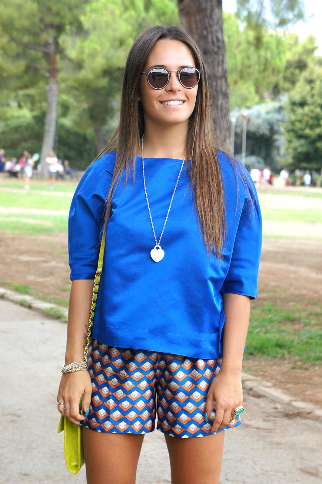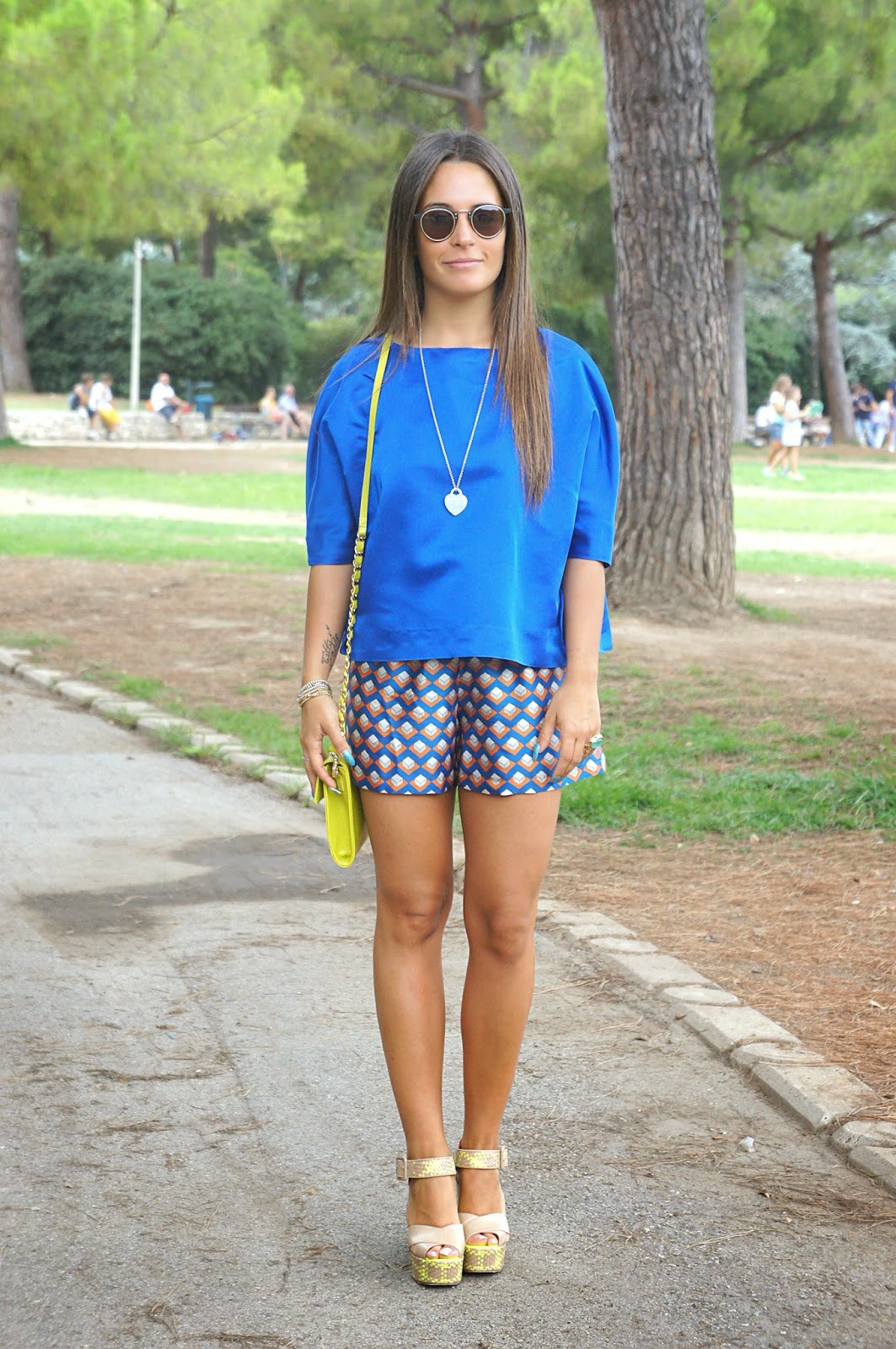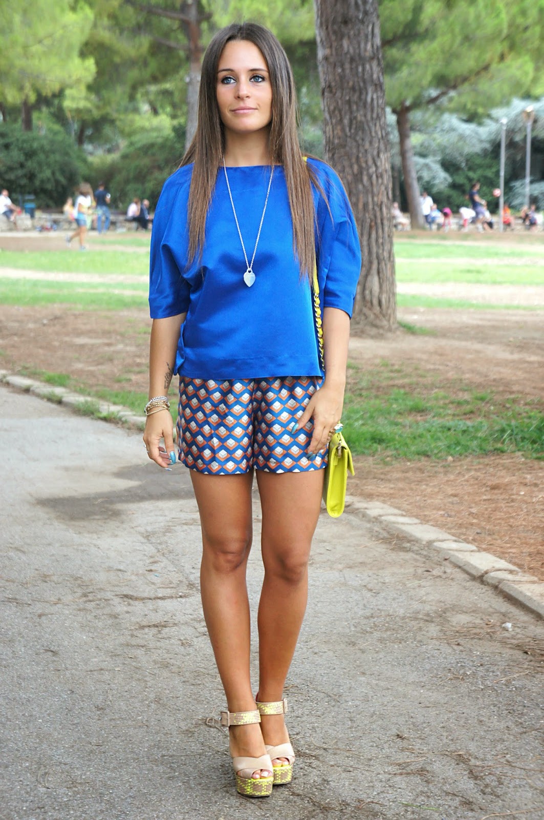Queste bellissime foto sono state scattate nel parco di Bari, un magnifico luogo che la mia regione offre a tutti i ragazzi che hanno voglia di staccare dalla routine di tutti i giorni e vogliono dedicarsi alla lettura, allo studio o semplicemente fare quattro chiacchiere in compagnia o una lunga passeggiata. Purtroppo disto di un bel po’ di chilometri, perchè altrimenti ci andrei spesso e volentieri. Ovviamente mi trovavo lì per fare qualche acquisto, perchè d’estate con 40 gradi Bari non è proprio il luogo ideale per vivere, e così mi son detta <perchè non approfittare di questa venuta per fare qualche scatto con un look che gode particolarmente della mia simpatia (ihihihih)?>. Indosso questa bellissima blusa blu elettrico di Capsule, abbinata ad uno shorts a fantasia dai colori sgargianti e un paio di zeppe Giorgio Fabiani tra l’altro comodissime. Ritengo “azzeccato” l’abbinamento fra questi due capi, visto che le tonalità insieme mixate, danno un senso di armonia. Immancabile l’anello YSL che ho ritenuto perfetto per questo tipo di outfit. Vi lascio guardare il resto del post. Un abbraccio.