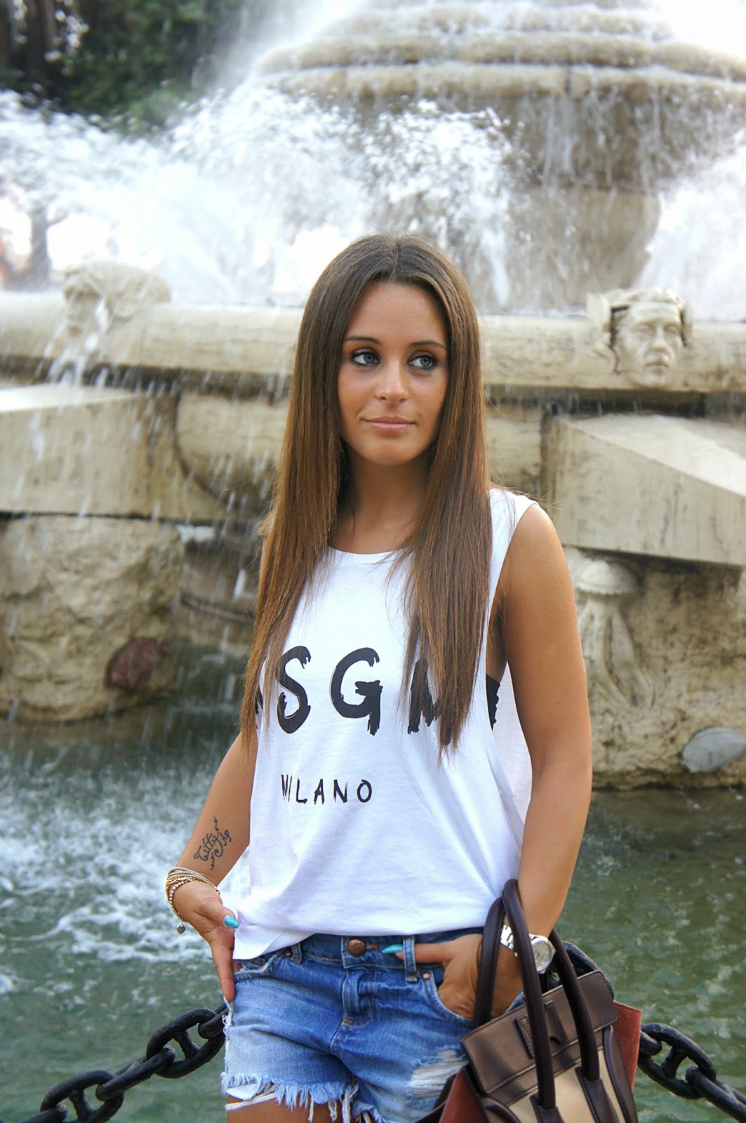 Il mio ragazzo mi ci porta spesso, perchè sa quanto mi piaccia passeggiare lungo le vie e strano ma vero piace molto anche a lui. Ci sono stata una settimana fa, e queste che vedete sono le foto scattate proprio lì. Mi ci è voluto un po’ di tempo prima di scegliere le foto da pubblicare perchè come vedete non sono proprio nitide, ma non posso lamentarmi dai, lui non è abituato :-). Mi avrà fatto un centinaio di scatti, ma l’80 % erano foto in cui ridevo a crepapelle insieme a lui.In un pomeriggio di shopping e relax non potevo non indossare un abbigliamento comodo ma chic allo stesso tempo, così ho optato per la mia canotta MSGM e i miei immancabili shorts in demin Bershka. Devo svelarvi un piccolo segreto…oltre ad essere lì perchè adoro la città, ci sono andata perchè ho in serbo un nuovo super acquisto dopo la mia Celine, che spero di poter fare mio al più presto. Io scappo, oggi sarò ad un’inaugurazione di un tatuaggeria, dove inoltre presenteranno un flash della nuova collezione be.FLUO, che non vedo l’ora di mostrarvi.