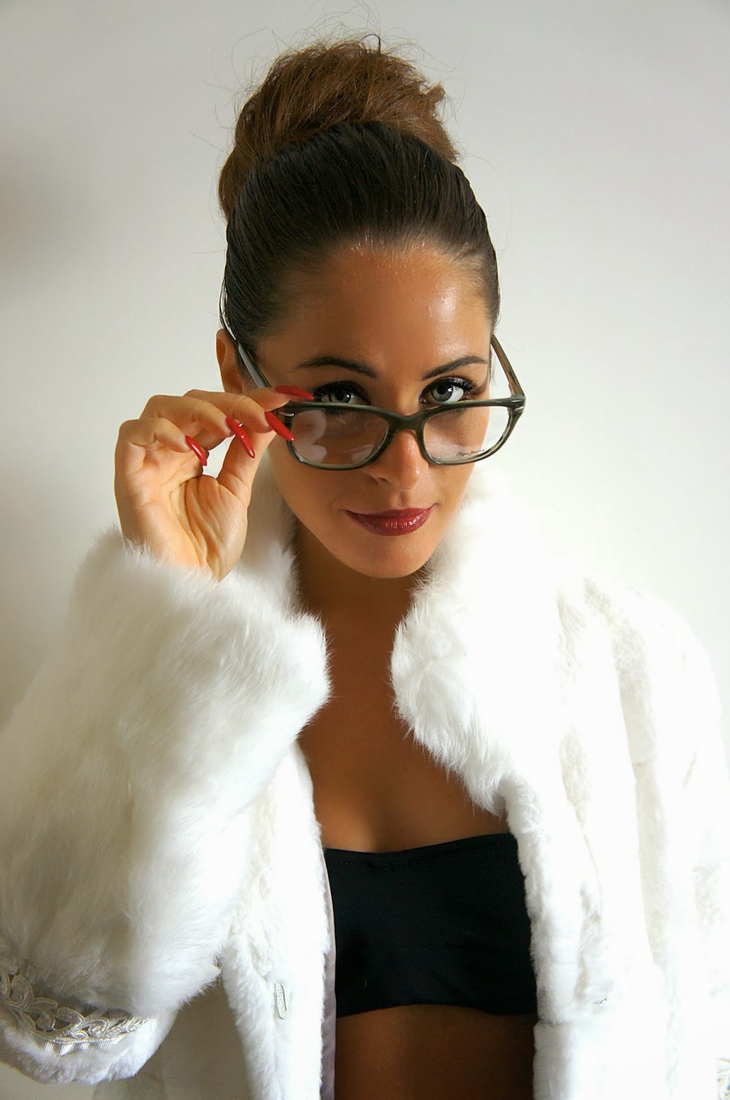 Io spesso porto gli occhiali, dato che sono miope (anche se porto anche le lenti a contatto), devo dire che anche se non ne hai bisogno ti stanno divinamente, sono bellissime queste foto e hai un viso molto adatto alle montature che hai provato ! Bella !