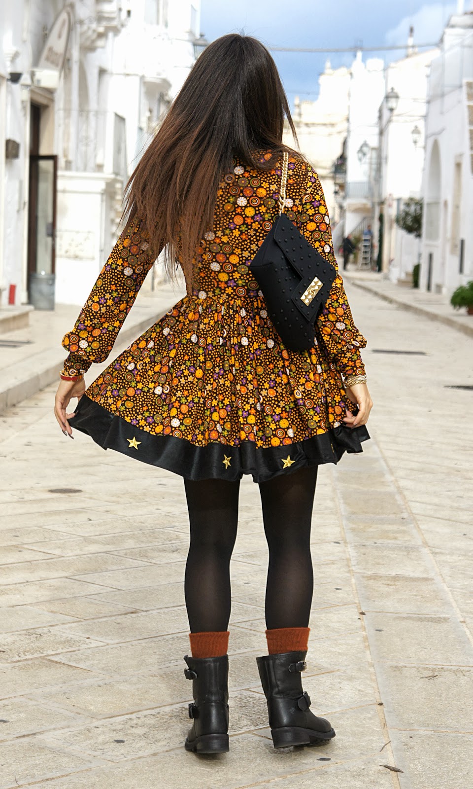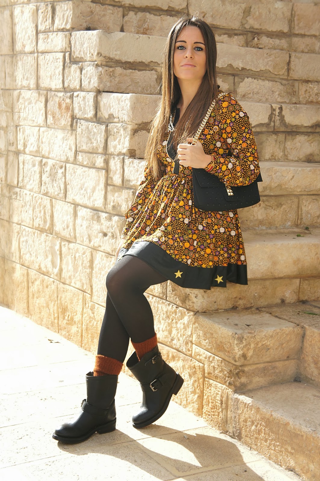 Ma quanto sei carina con questo abitooo, è troppo carino e ti sta benissimo! Ottima scelta per gli stivaletti, carino l’effetto dei calzini color ruggine che si intravedono dallo stivale
