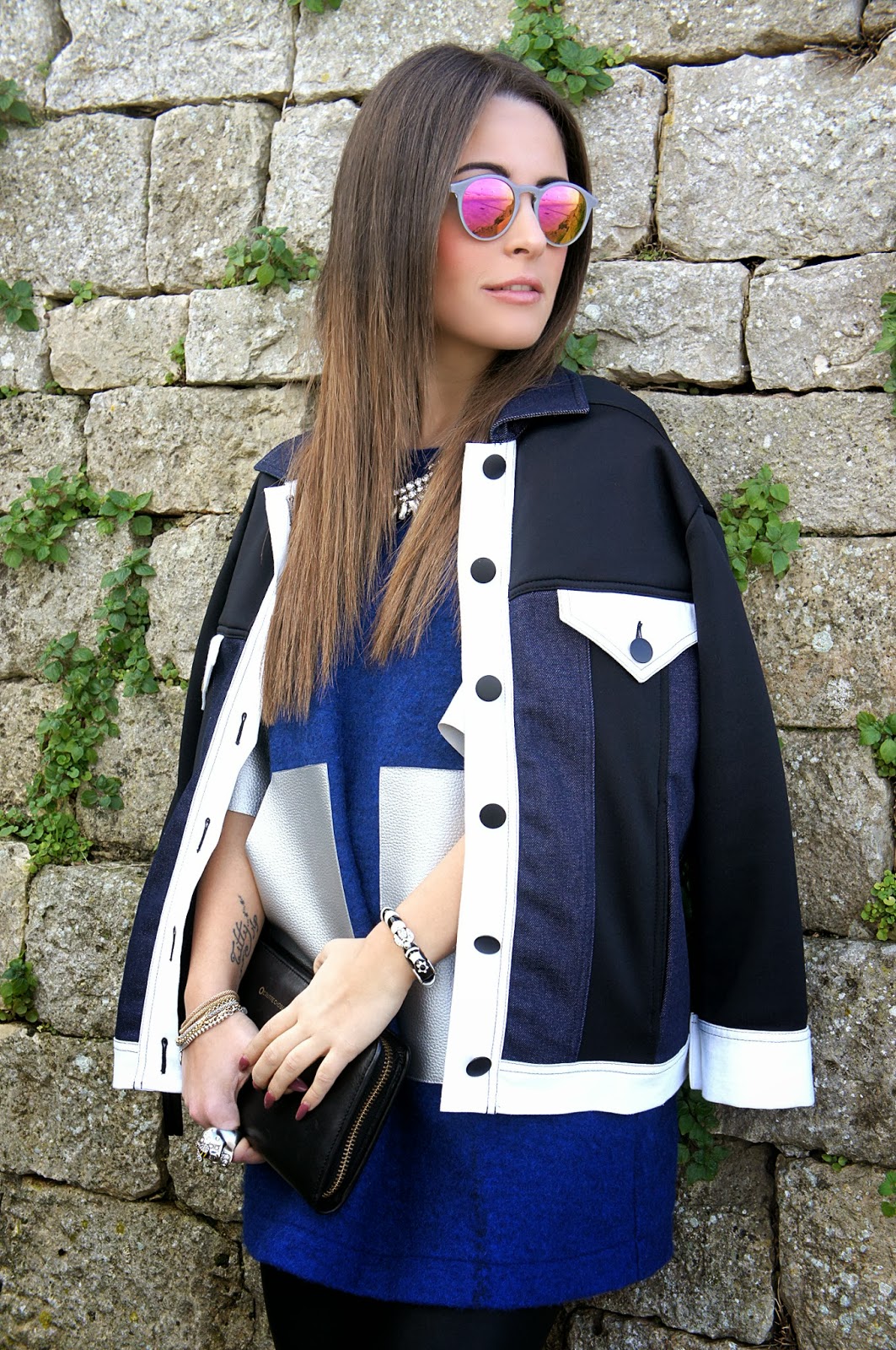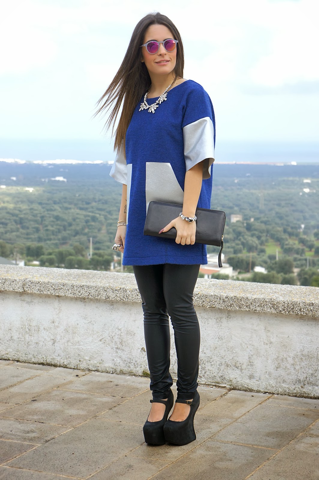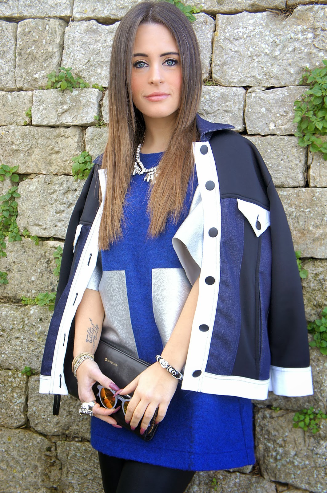 Eccomi di nuovo qui con il mio ultimo vestito. Questa volta uno “spazio” cerca caratterizzata dalla presenza di argento un bel colore soprattutto se abbinato con il blu e il nero che fanno risaltare. Il pezzo principale è sicuramente il Capsule abito con inserti in pelle argento che ho scelto di unire con un leggings in pelle e Jeffrey Campbell Night Walk, per rendere le cose ancora più spazio! Per quanto riguarda la giacca che ho scelto di indossare, ho deciso di mettere questo pezzo perché dopo lunghe ore cercando molti diversi vestiti davanti allo specchio, alla fine mi sono buttato su questa scelta che sembrava essere il più adatto perché le belle applicazioni che hanno, rendono il look più ricco ed effetto colorful.Same danni occhiali a specchio, che potrebbero colorare l’intero aspetto … A cosmici sguardo e colorati!
