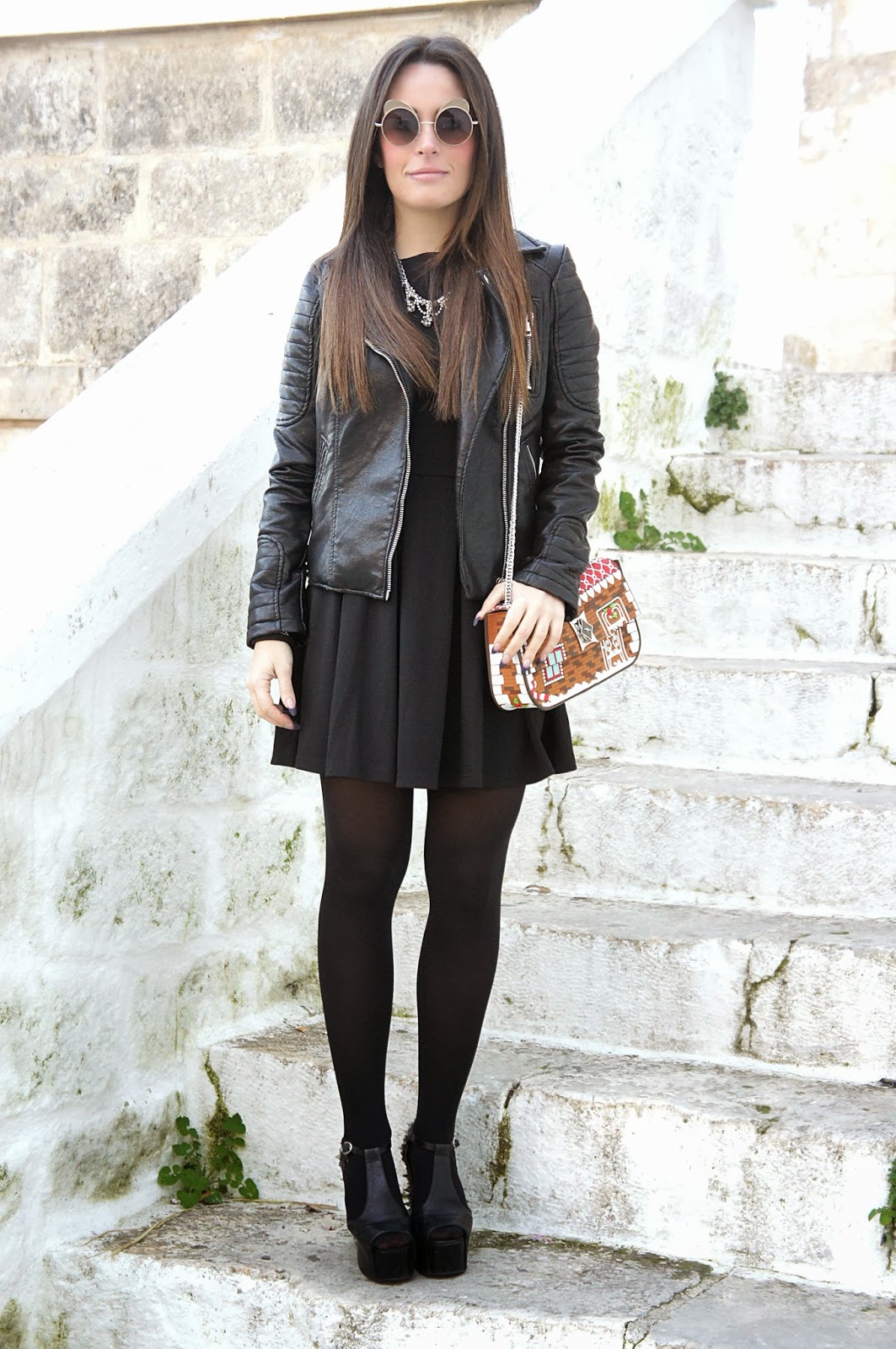 Bellissimo il vestito e la borsa stile hensel e gretel…..gli occhiali sono molto john lennon