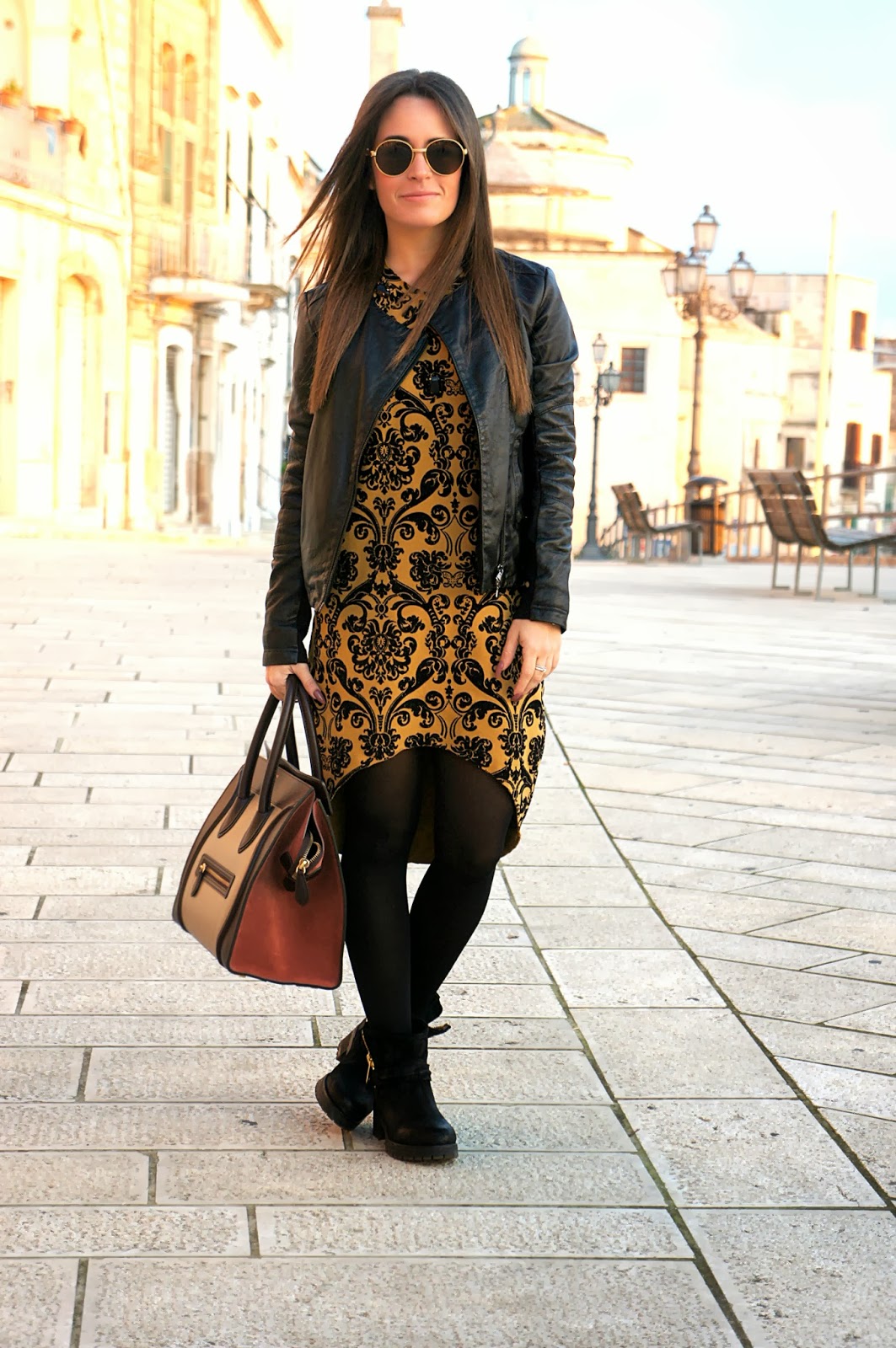 Il primo è perfetto secondo me, adoro la giacchina con le toppe abbinata all’abito semplice e ai bikers! Bellissimo anche l’abito senape con stampa barocca!