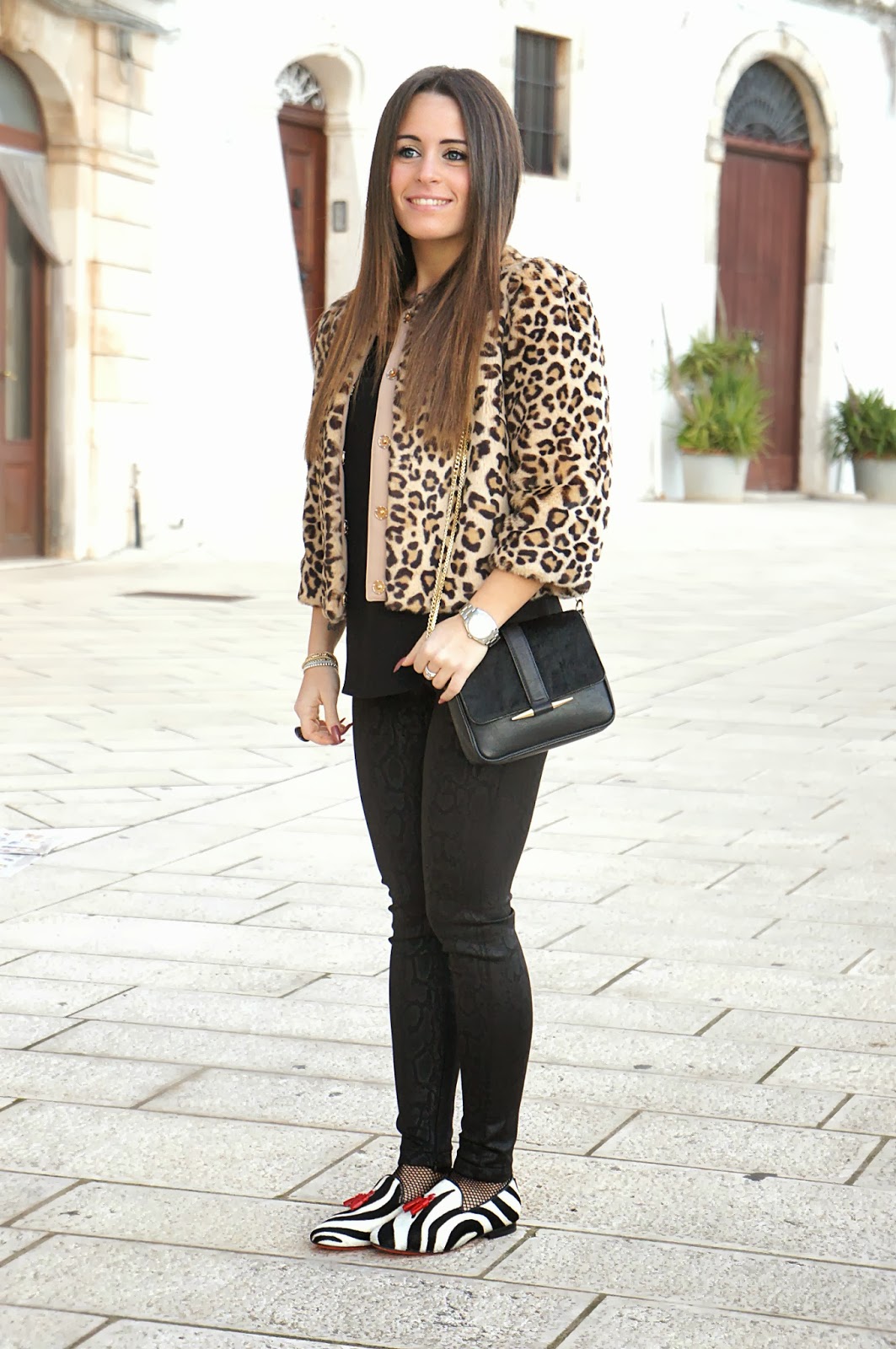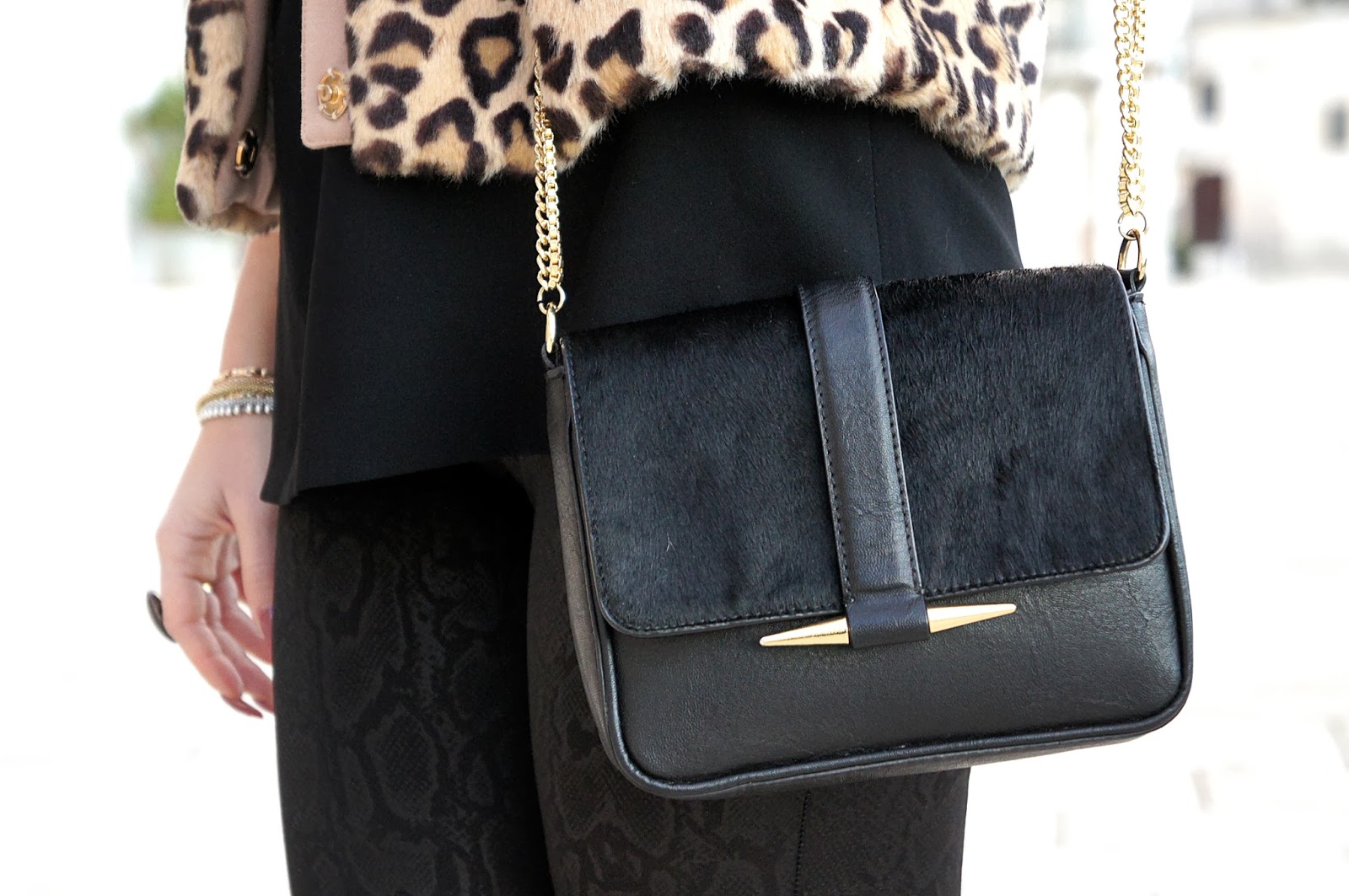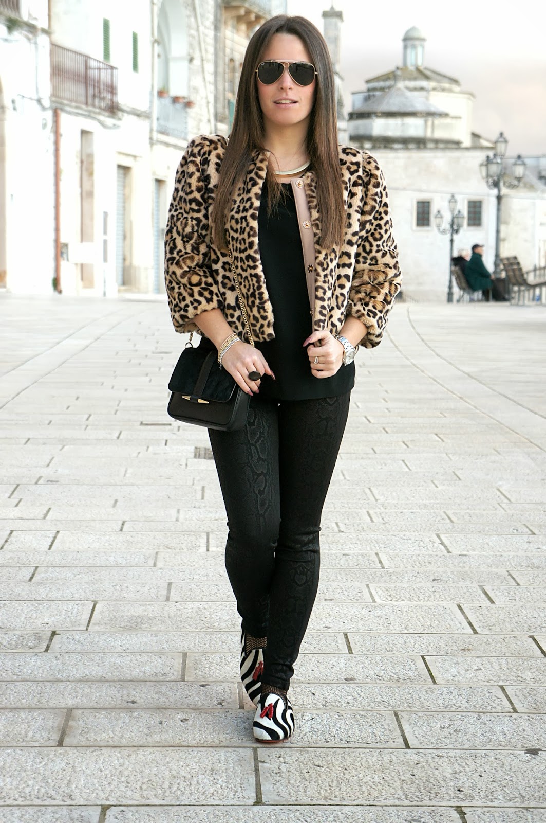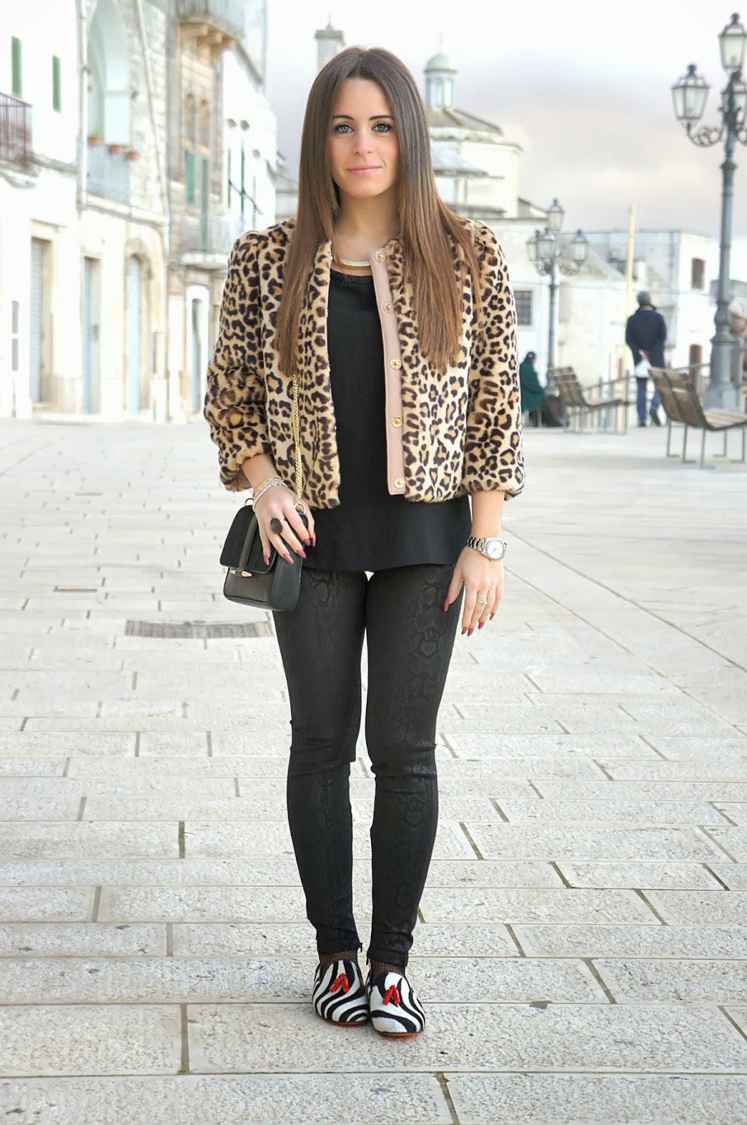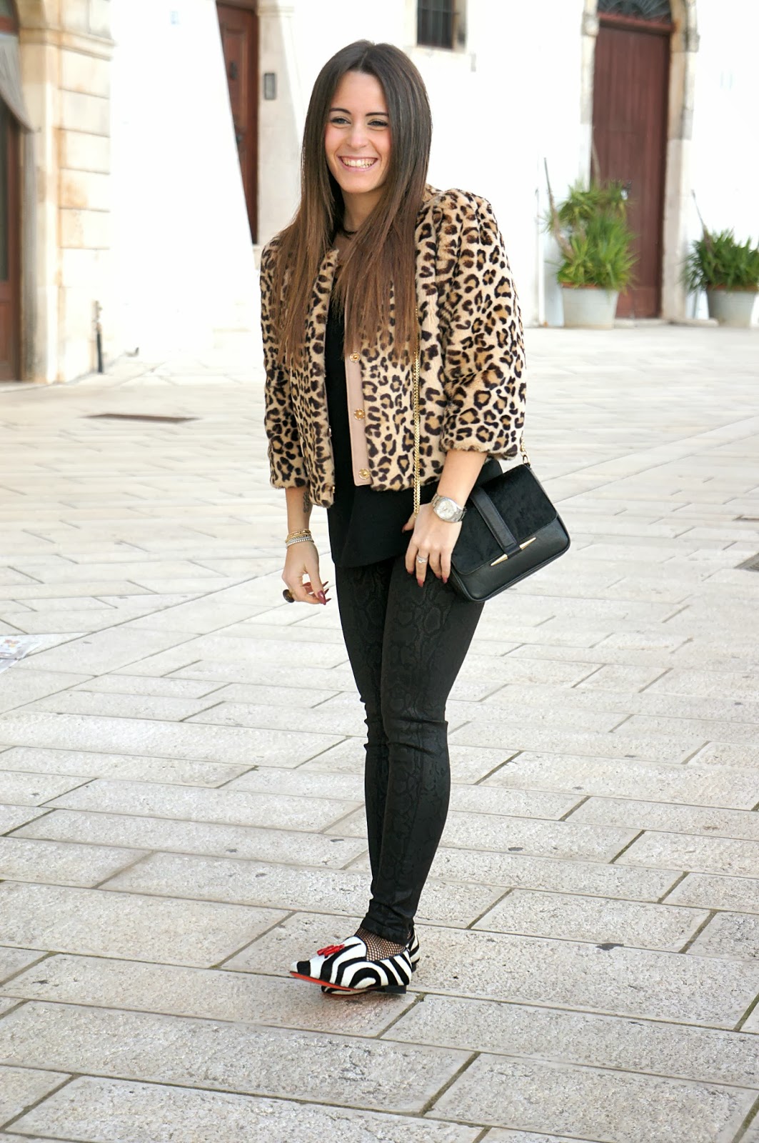 Ancora una volta un outfit in cui ci ho messo dentro 2-3 stampe animalier (come QUI): dalla mia nuova giacca di pelliccia Elisabetta Franchi, alle mie flat Communication Love raffinatissime, ai miei pantaloni Zara stampa pitonata vedo non vedo.
