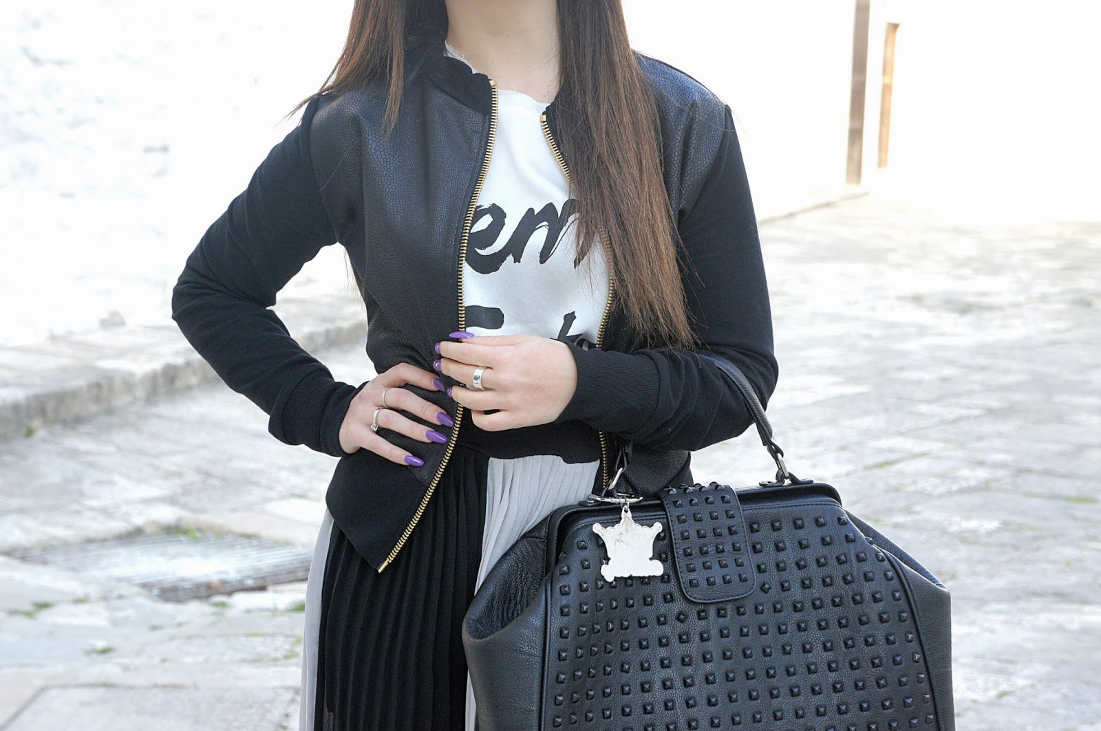 Troppo bella la maxi gonna con il chiodo. E’ un abbinamento che adoro!