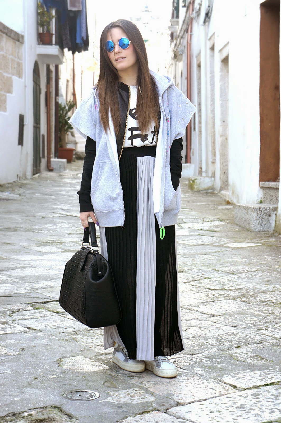 Mi piace molto questa gonna, ti preferisco però con il chiodo piuttosto che con la felpa!