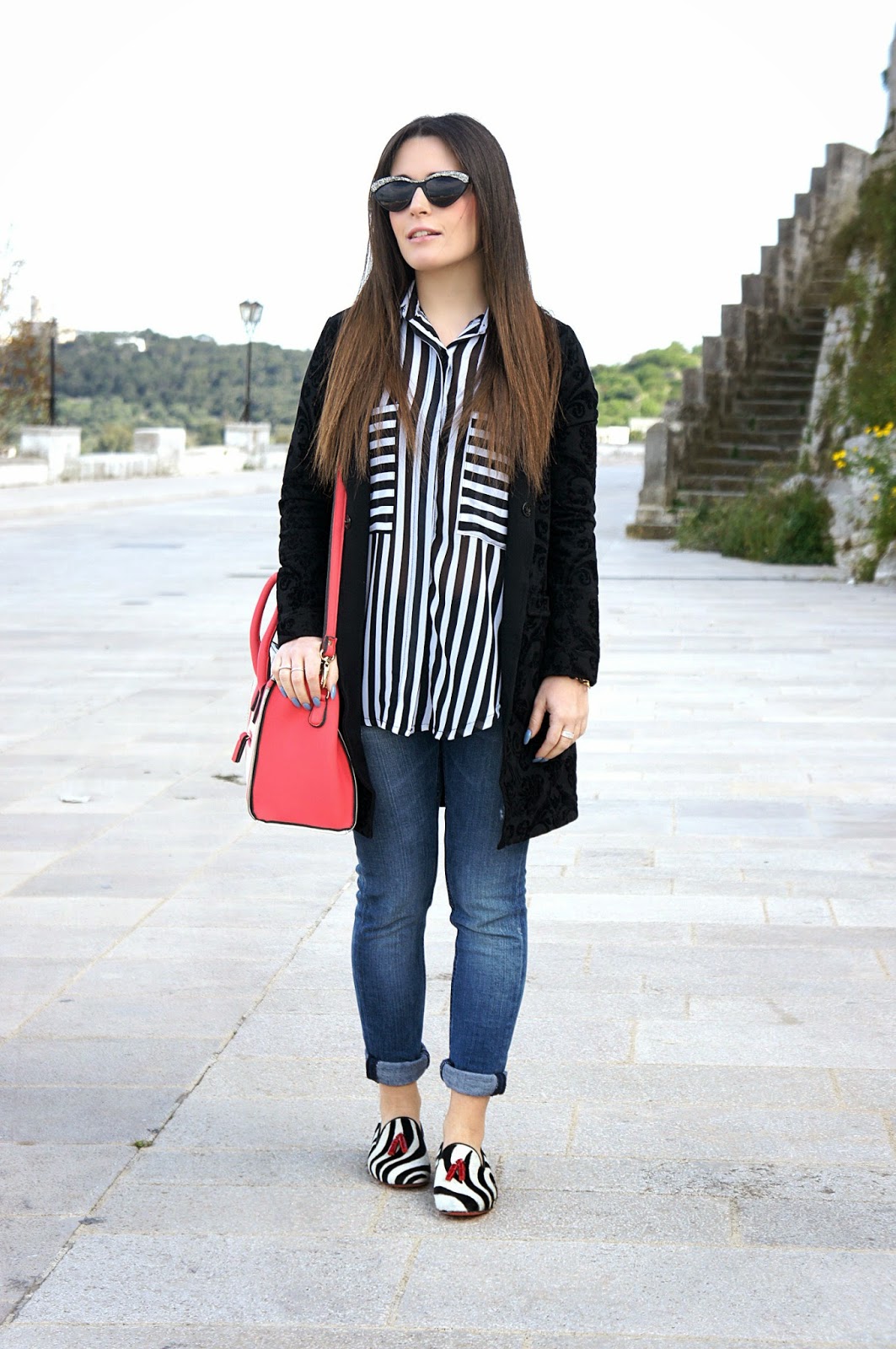 As I’ve mentioned in previous posts, I really have a lot of looks to show, and one is just that. I chose for this look clothes in the black & white striped and patterned zebra, patterns central in recent seasons, who accompanied us and who will be with us again. As you can see, the look is based on dark colors, but the touch of my fantastic new ViaMailBag makes everything brighter. It is useless to say that accessories are a must in my looks and this time there is my new Bibelot bracelet. To be honest before I was undecided whether to opt for buying the Infinity Dubai line or the one who eventually prevailed, the Infinity Mon Amour. Bracelets conceived, designed, produced and marketed by Bibelot Jewels and in the best jewelers. They are really distinct and unique in their kind on the market, everything else is just imitation :-). Maybe I’ve already chosen my next color, and you which would you choose?