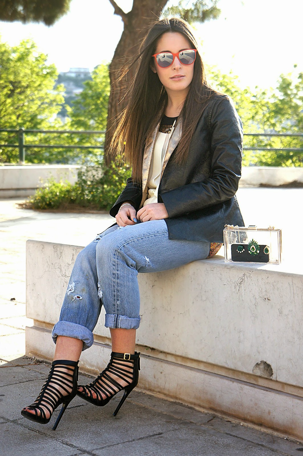 Mamma mia, che look stupendo! Quei sandali so veramente audaci, come fai a camminarci? Io non potrei nemmeno starci in piedi:) Buon weekend!