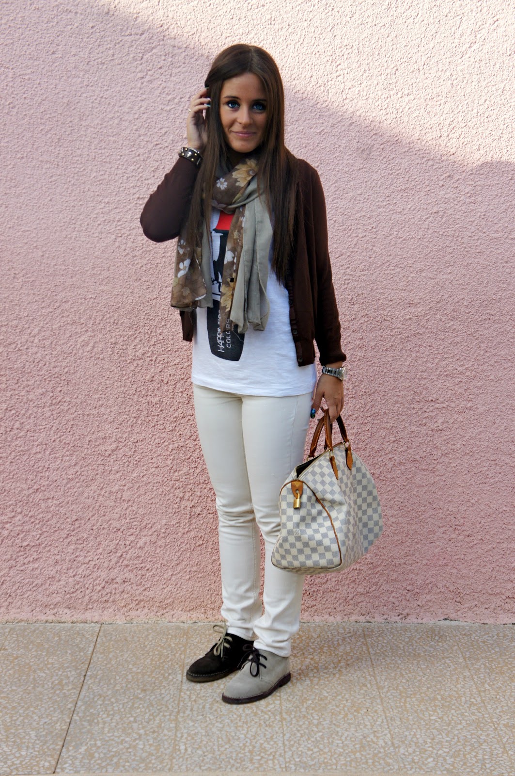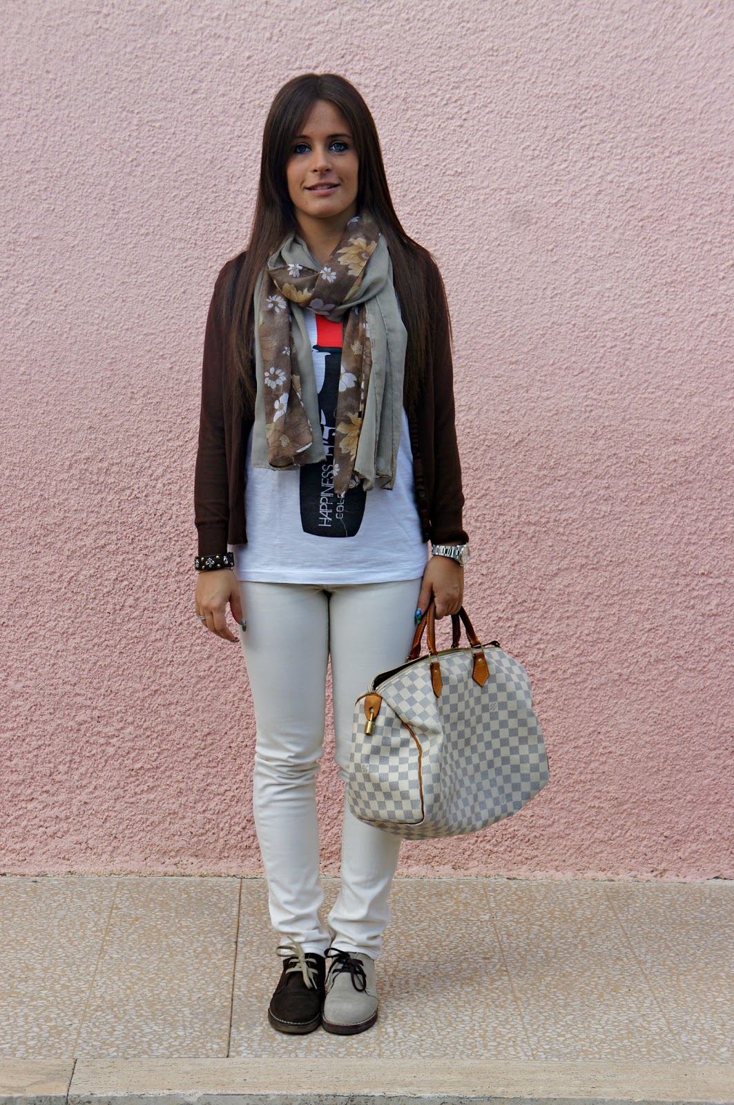 Hello fashion blogger! Here is a new post. For my second day in a row I propose a similar outfit: jeans colored t-shirt printed and even the same shoes dell’outfit above, but of a different color … Oops I mean of three different colors! Yes, it was a blur and I look bad: it is just like that, they are two different pairs, sand and the other brown. One day while I was thinking about what to wear I was reminded of my ankle the same but different colors and decided to leave the house like this, exchanging the shoes! What do you think? surely many of you will not like, but I would like to know what you think … and even, would you do it too?