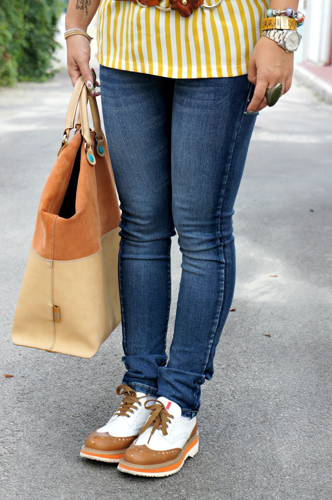 Stai benissimo, bei colori e bellissime le scarpe, devo dire che anche la borsa è di mio gradimento, ti trovi bene? anche io vorrei prenderne una della Gabs, ottima qualita’!!