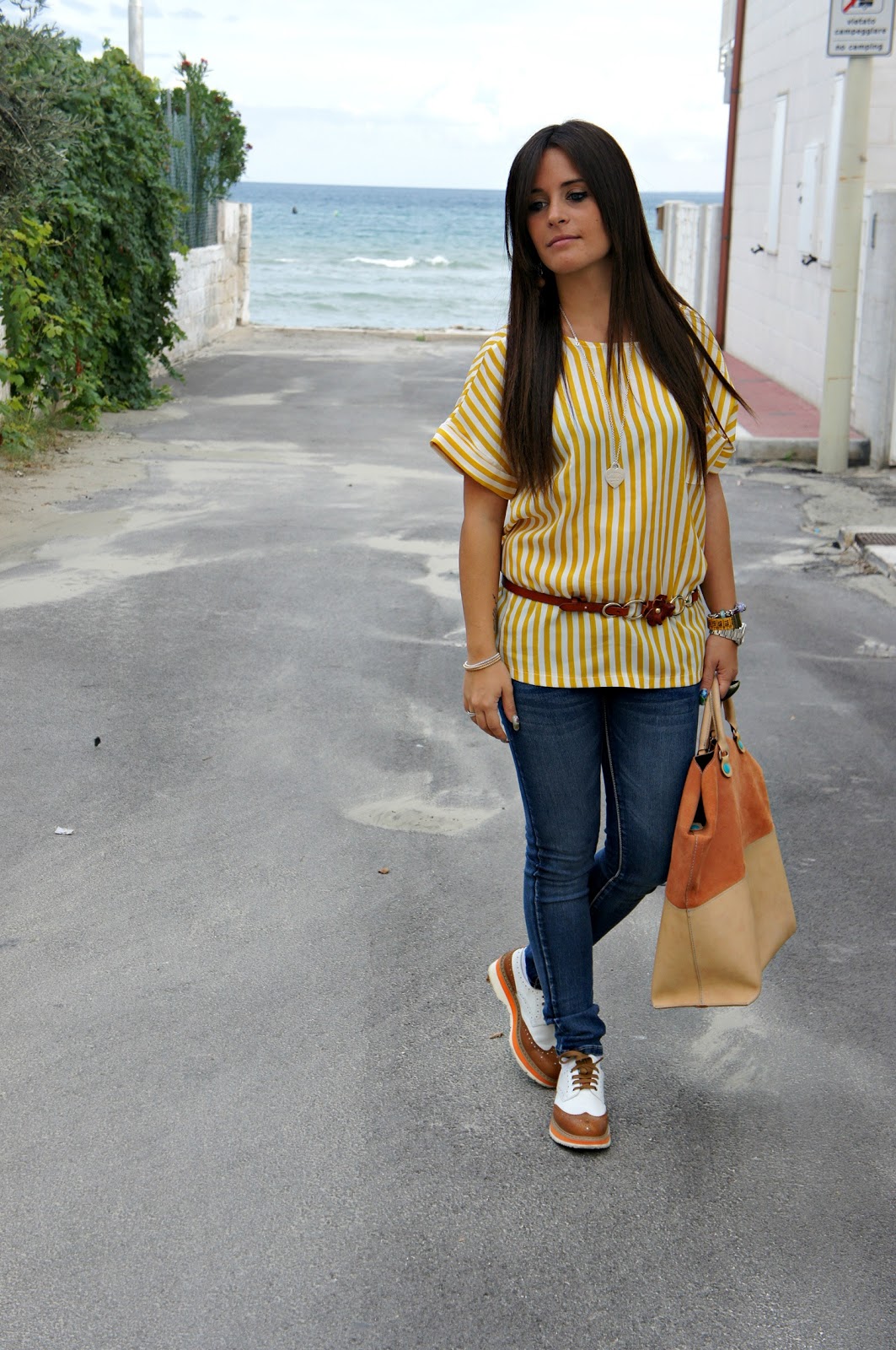 Hello guys! How’s the weather there for you? Here’s a little ‘wind but still it’s hot … and I can not take it anymore! These days I never know what to wear … summer or winter? you know between seasons are unknown! That’s why I chose to wear a cool striped shirt with jeans, so at least rest on the safe side! In addition, I decided to wear my Prada you have seen HERE and HERE. Just to highlight a little ‘more the shirt I thought of putting a belt in my opinion very pretty! What about the final result? And ‘acceptable?