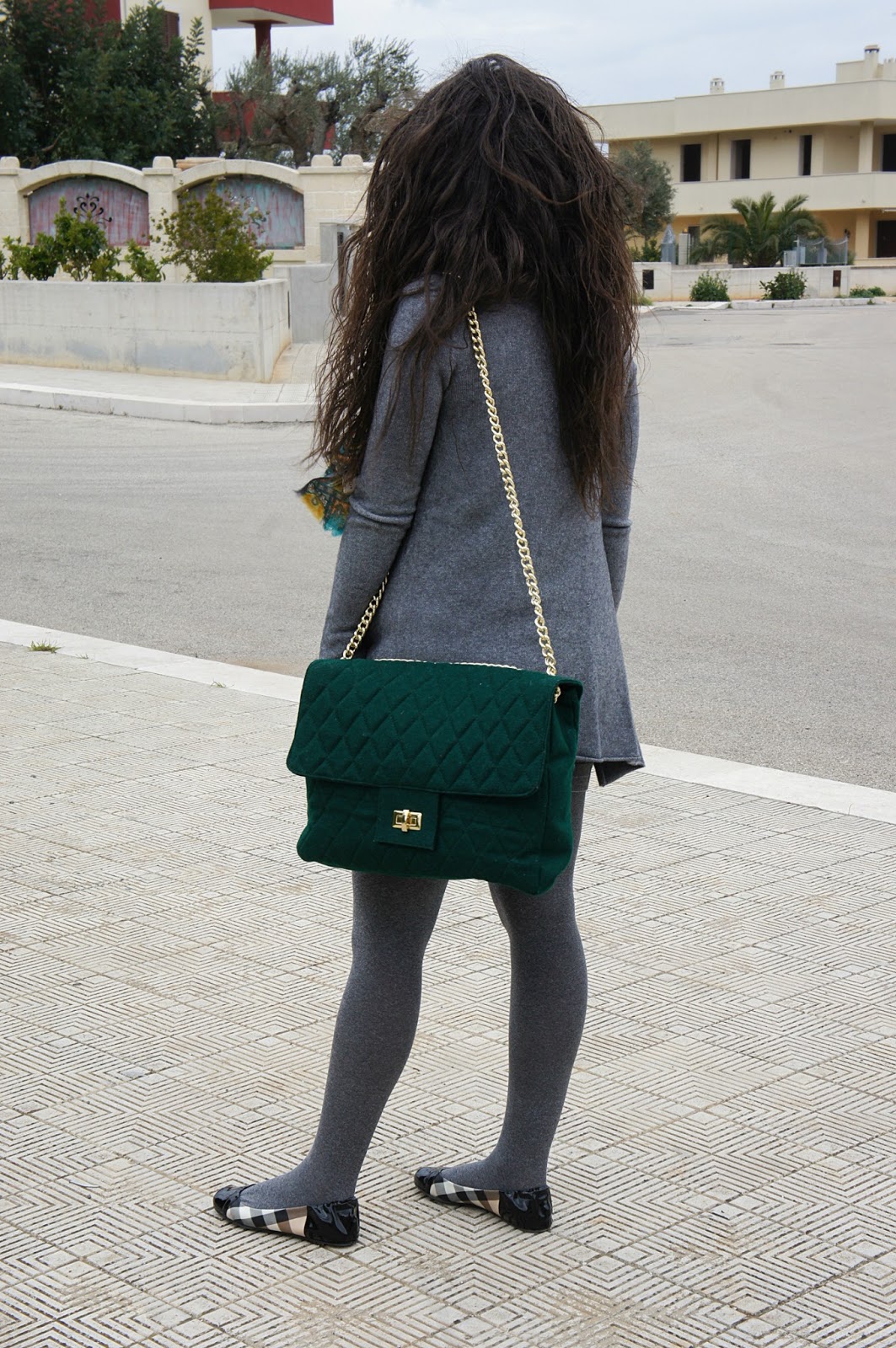 Good morning! Finally, the weekend begins. You have seen often, sometimes I like to create a total look that focus on one color: that of today is very gray. It is not a color that I really like, or a color that inpazzisco, but I really liked the fact that they take a few accessory green and ceck burberry shoes. I know you are used to seeing me or straight hair or tied, but sometimes I like to change, though (if I could) I would do it all the time. Today, in fact, not having much time, I put on a foam ok and go. Have a good weekend, the next post.