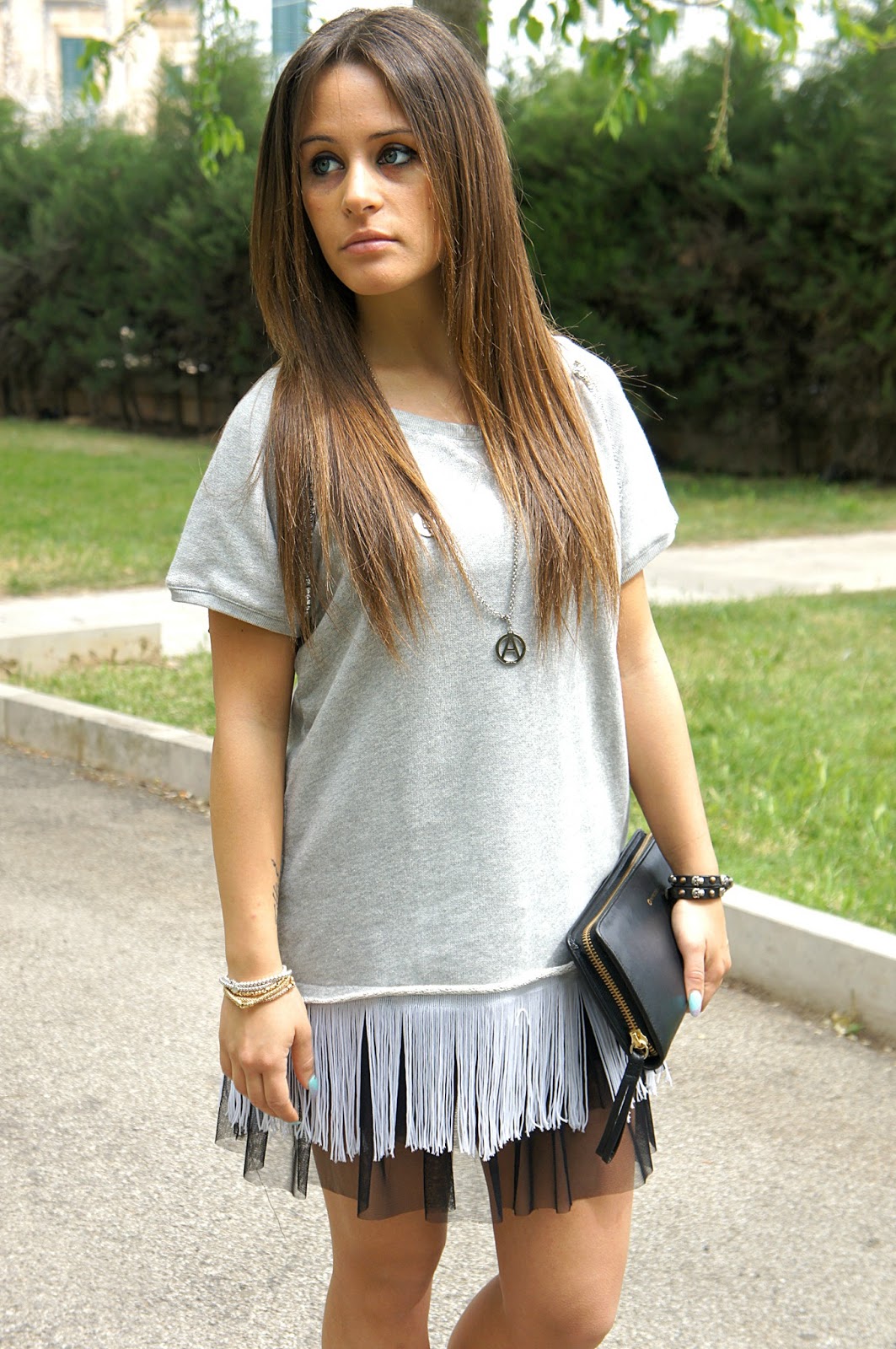 Looks I showed you in the last post were mostly simple, look to wear seam ‘in another daily, but also wanting to spend evenings around the city, on the premises or just a pizza with friends. ‘S outfits but today is all’ more than usual, because as you can see as well as having a shirt with fringe and rhinestones and so very special in itself, I wanted to put in an unusual head, that this skirt / dress in tulle. I find this pairing really adorable and to make it even more rock I chose the enriched Jeffrey Campbell studded with sock on goal.