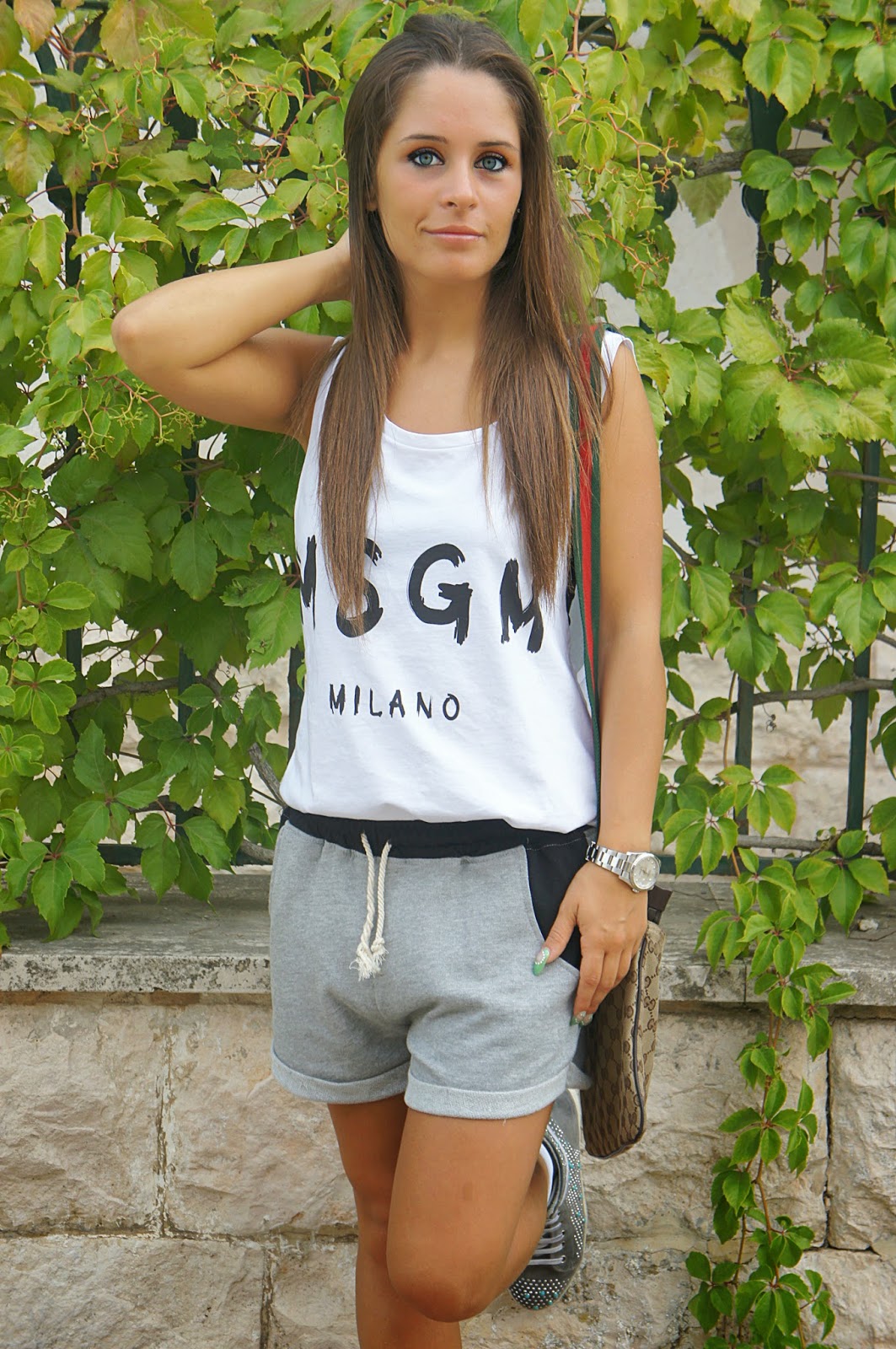 Ma adesso è tempo di mostrarvi un nuovo look, che ancora una volta vede me in una versione sportiva e pratica. Risale a un po’ di giorni fa, indossato in una serata trascorsa con i miei cari amici in un locale sul mare, ad ascoltare buona musica. Chi di voi mi segue su Facebook e Instagram saprà che uno dei miei ultimissimi acquisti insieme alla Celine è stata sicuramente la canotta MSGM cercata ovunque ma sold out dappertutto. Che dire, in questo ultimo periodo sono davvero felice e mi sto godendo a pieno questa bellissima estate, anche se fra non molto dovrò fare a meno del mio ragazzo perchè andrà via per qualche settimana. Fortunatamente le amicizie non mancano e sono certa che non mi annoierò di sicuro. Vi auguro di trascorrere una bella domenica.