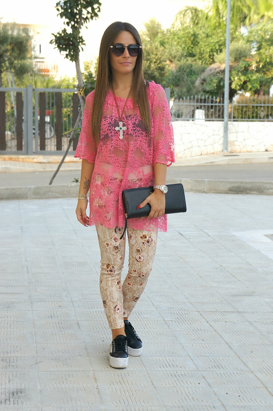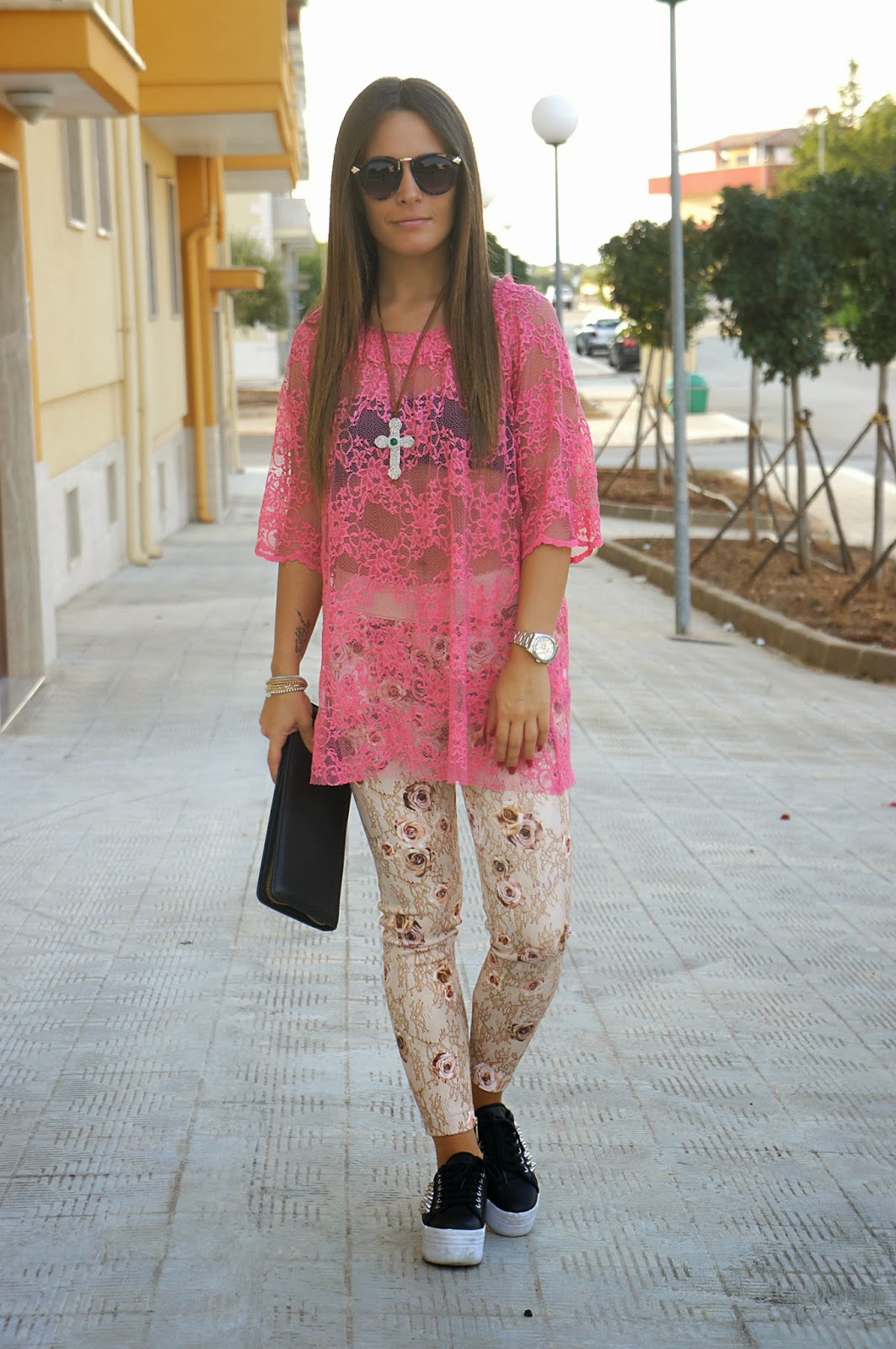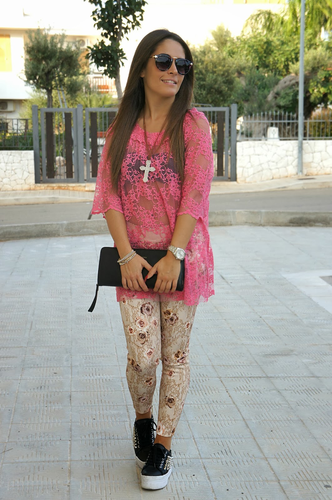 Ovviamente ho optato per un paio di scarpe basse anzichè un paio di tacchi, perchè ritengo che mi avrebbero resa volgare. Ci ho abbinato una blusa rosa in pizzo trasparente e a contrasto con il resto della mise ci ho messo clutch e scarpe nere borchiate, per dare un tocco “rock” all’intero outfit, da non sembrare una bambolina come quelle che da piccoline avevamo sul comodino :-). Anche la scelta della collana non è un caso, dato che si avvicina molto al genere delle scarpe….creazione anch’ essa di Vincenza Giannoccaro, ideatrice di alcuni accessori e gioielli che vi ho mostrato in vari post QUI e QUI, e che se volete potete acquistare. Vi lascio anche il link del post in cui ho indossato le scarpe da lei realizzate e il link alla mia pagina Facebook da cui poterle acquistare. A giorni vi mostrerò anche altri colori.