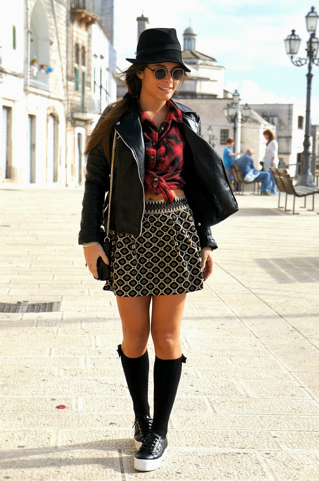 Bello il mix di stampe, forse non amo troppo le calze sotto al ginocchio!