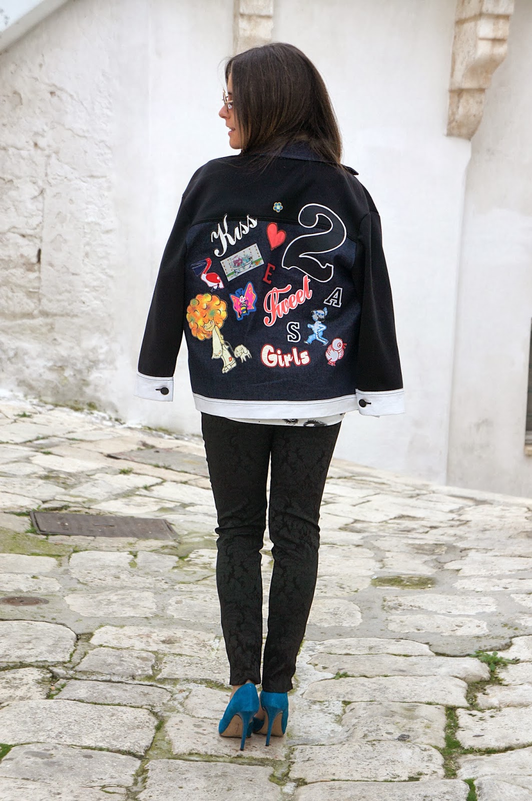 Il look di oggi è uno di quelli tra i più belli che vi mostrerò. Amo l’accostamento di due colori così forti come il nero e il blu, specialmente se abbinati con due capi così singolari come la camicia Au Jour Le Jour e il bomber Capsule, e il pantalone So Allure. Vi fanno pensare a qualcosa i disegnini sulla mia giacca? Ricordano molto il bomber indossato QUI, infatti entrambi i capi sono Capsule, un brand innovativo ed originale che si distingue in ogni singolo capo. Le decolleté Jessica Simpson sono appena entrate a far parte della mia collezione. Ad esser sincera, un modello del genere mi mancava e appena le ho viste non mi son fatta scappare l’occasione di acquistarle. A completare l’intera mise c’è la mia nuova clutch White T-shirt totalmente realizzata in Plexiglass, bella sì ma sicuramente poco capiente. Vi lascio guardare le foto e ci si vede al prossimo post.