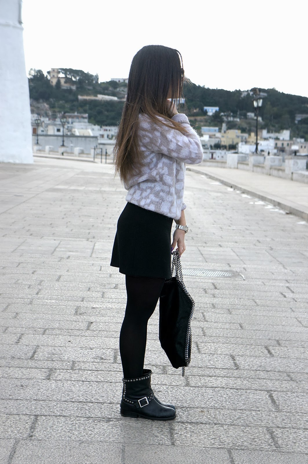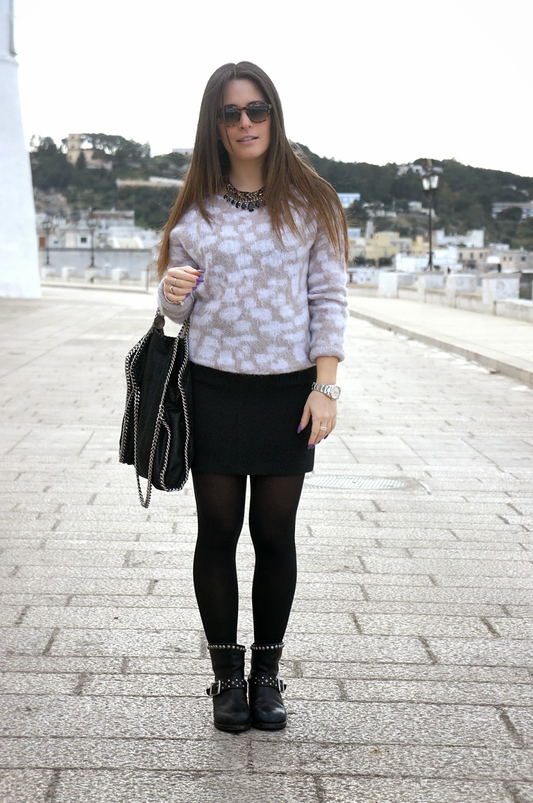 Hello and Happy Sunday to all. Last weekend, as many of you know, I was in the Veneto region at home of my relatives. have been four beautiful days, full of entertainment and shopping and above all a great opportunity to spend time with my cousin that I love and which I have not the chance to see often. Finally today and in the coming days that will be, I will publish the outfits worn during the day and various other photos. The first day to welcome us was the rain, so much so that I quickly abandoned the idea of being able to take some pictures, but fortunately the other three days the sun came out and the time for two shots is certainly not missed (In fact, the next photos will be outdoors). When traveling, I think the first thing one has to think is to be comfortable as much as possible, which is why I chose my Mr.Wolf biker boots of which I own various colors, a black skirt simple but elegant cut, and a So Allure sweater never worn before, and that I knew I would have warmed in those very cold nights. I go there every year, has become a habit, as well as my shopping trip by Sorelle Ramonda, a mega store, chock full of thousands of brand and of which there is to lose your head.