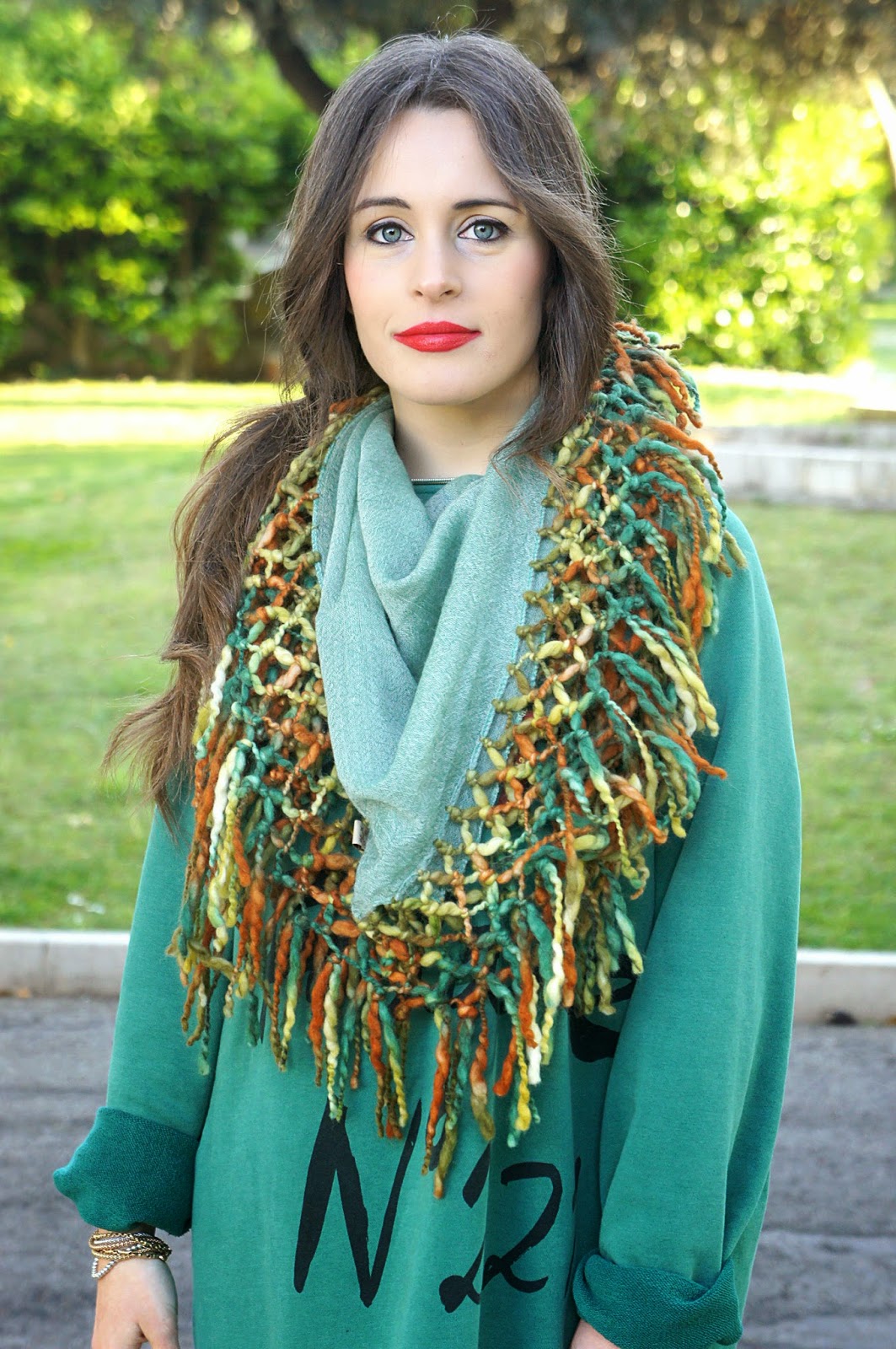 trascorsa a fare una lunga passeggiata con una mia amica al parco di Ostuni, una città magnifica della mie parti, e vedere adulti e bambini giocare e chiacchierare in giornate come quella è davvero bello. Il verde smeraldo della maxi felpa 5Preview (indossata anche qui) e della sciarpa, insieme al tocco di rosso del mio nuovo rossetto Yves Rocher rendono l’abito luminoso e pieno di armonia e a completare il tutto ho scelto il mio zainetto Persunmall (vedilo indossato anche qui) che avevo per un po’ abbandonato nel mio armadio e i miei stivali Giancarlo Paoli entrambi marrone. Che ve ne pare? Attendo i vostri commenti, a domani con un nuovo post.