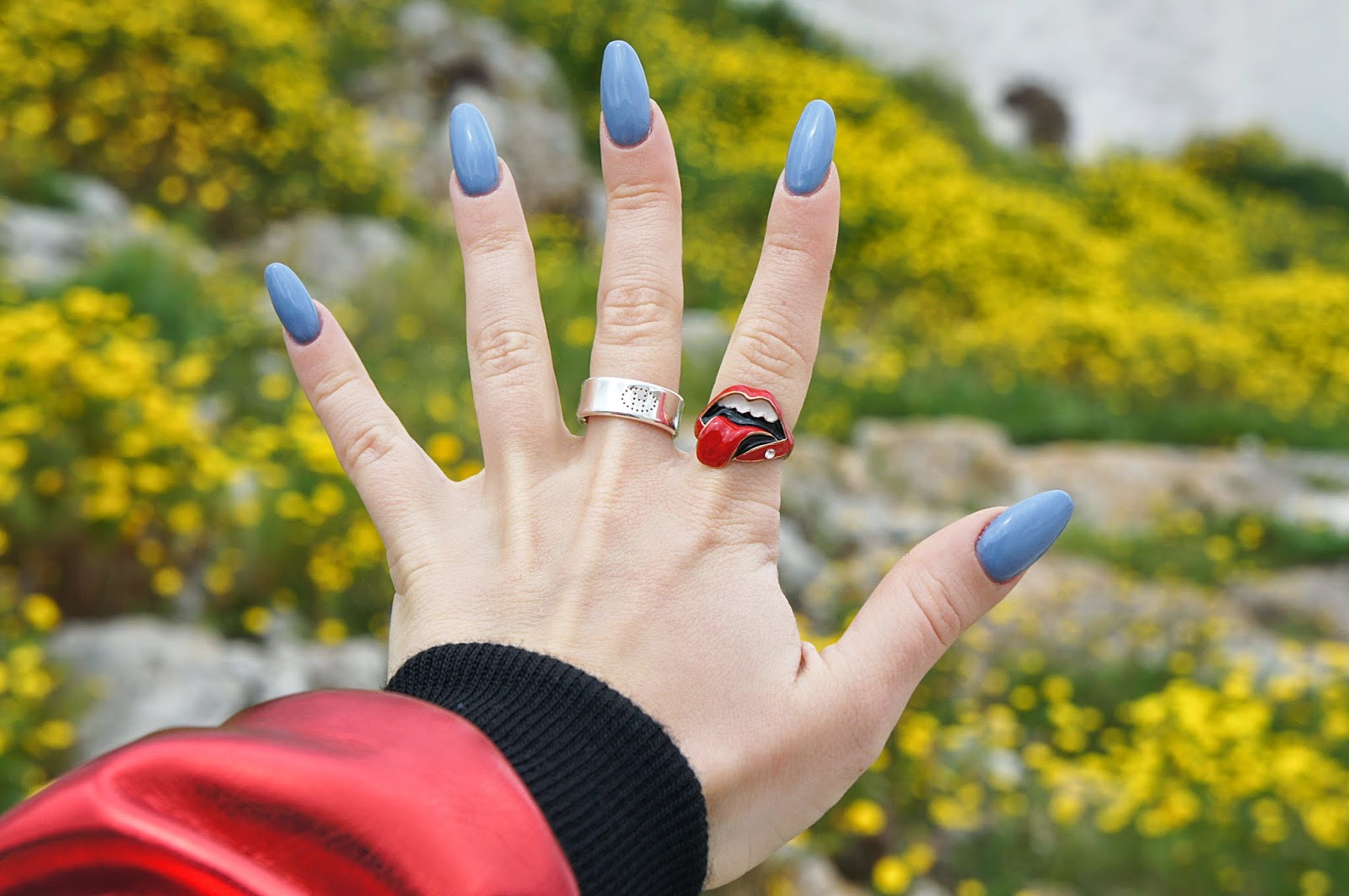 Carino il bomber e mi piacciono molto i jeans, troppo forte l’anello con le labbra